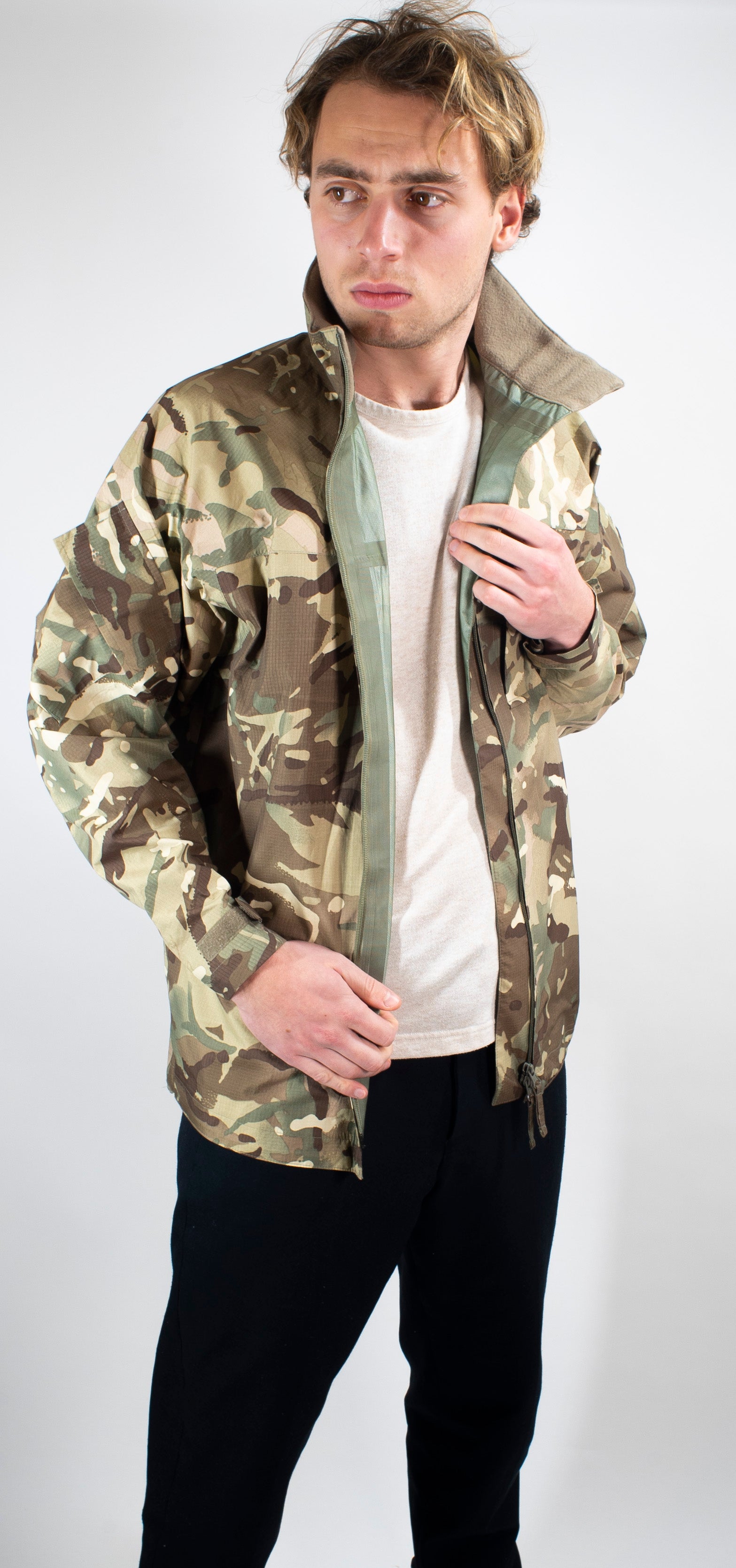 This British army Multiple Terrain Pattern (MTP) combat "Gore-Tex" jacket is genuine military surplus. These waterproofs are made from lightweight waterproof and breathable rip stop Gore-Tex like material, that allows sweat to escape in the form of water vapour, while keeping out the wind and rain. Which makes them ideal for Cadet's, Hunting, Hiking, Fishing and other outdoor activities. These are current British army issue in MTP Camouflage (Multi Terrain Pattern).