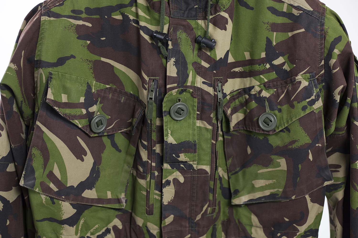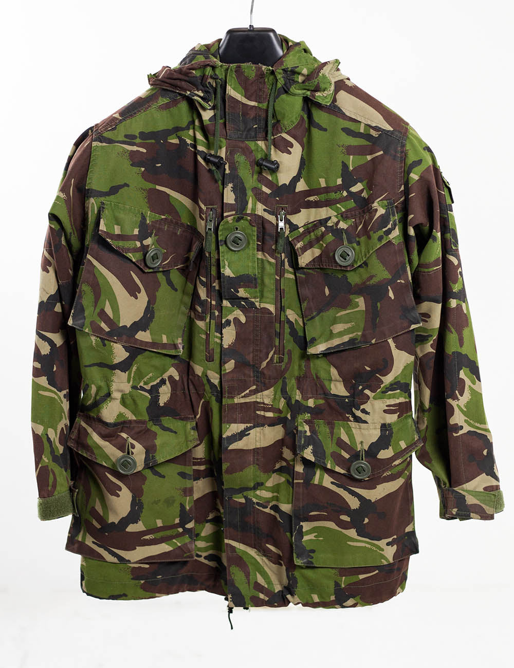 Genuine UK military issue British army windproof jacket/smock in Disruptive Pattern Material (DPM camouflage design. These jackets are made from a very tight gabardine weave cotton that blocks the wind and has excellent thermal properties, making them an extremely popular jacket with Cadets and other outdoor enthusiasts. Other features of this jacket include: