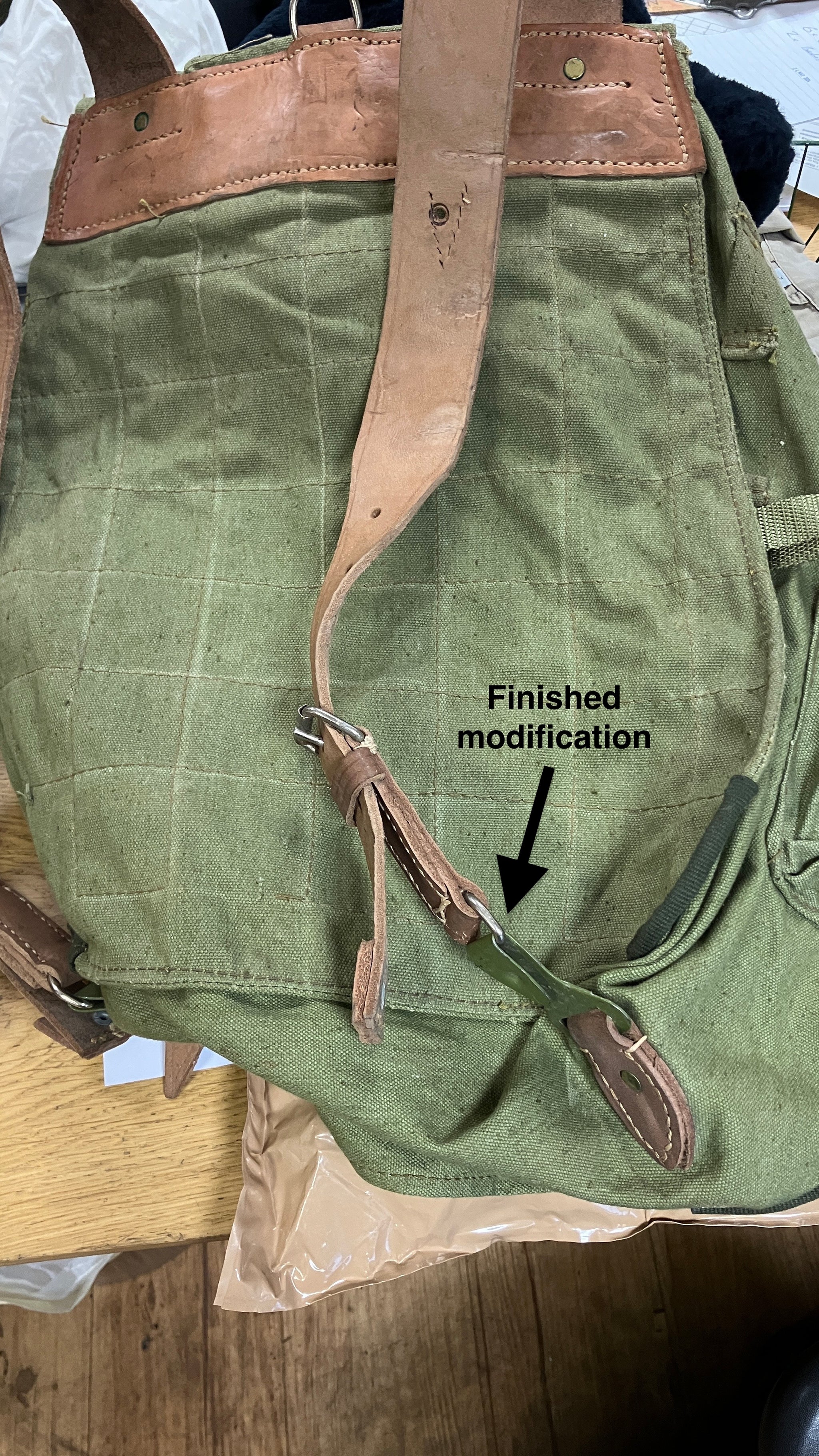 Our un-adapted version of this rucksack - with its original shoulder straps, accessory straps, helmet holder - is available here.