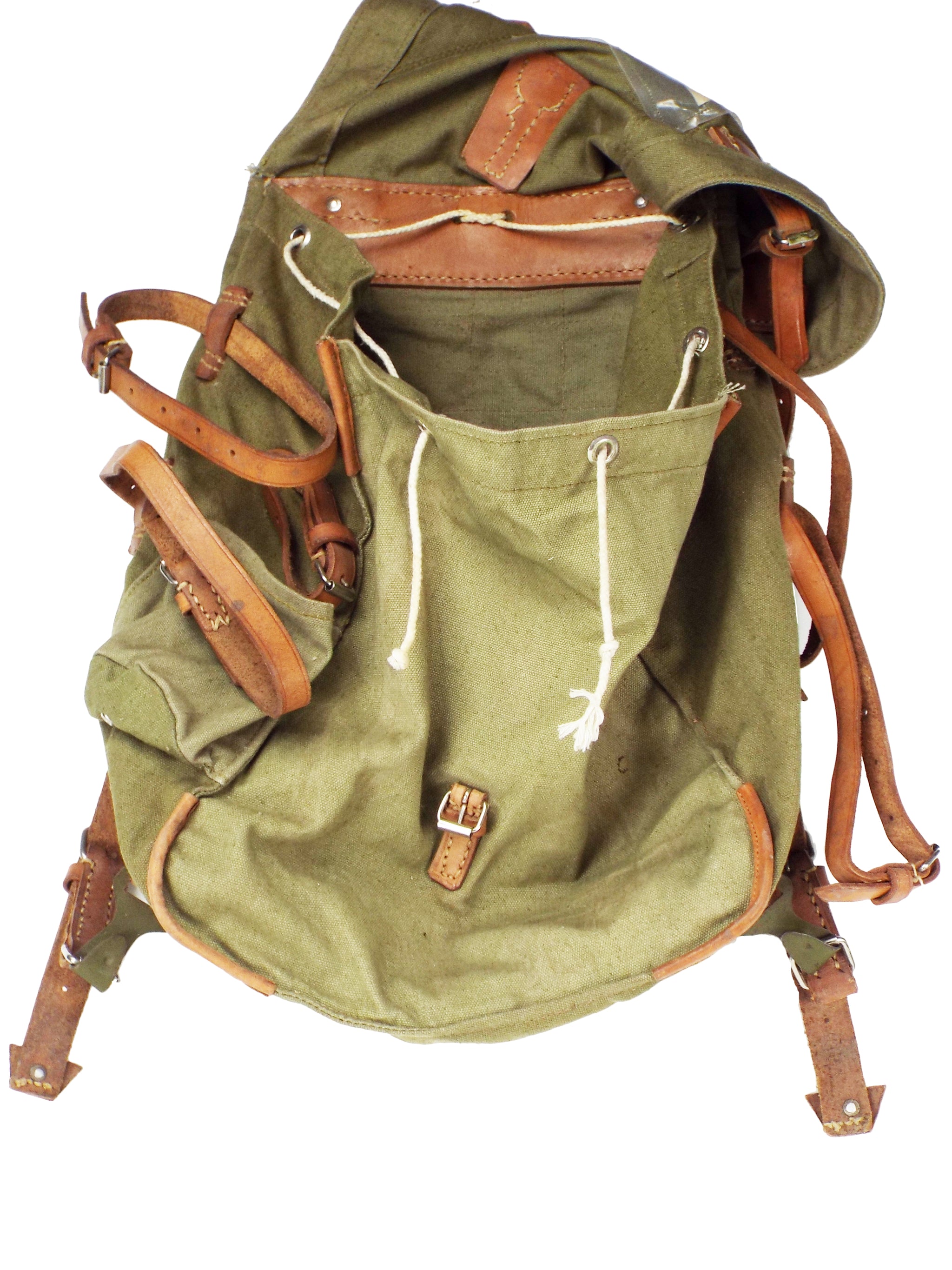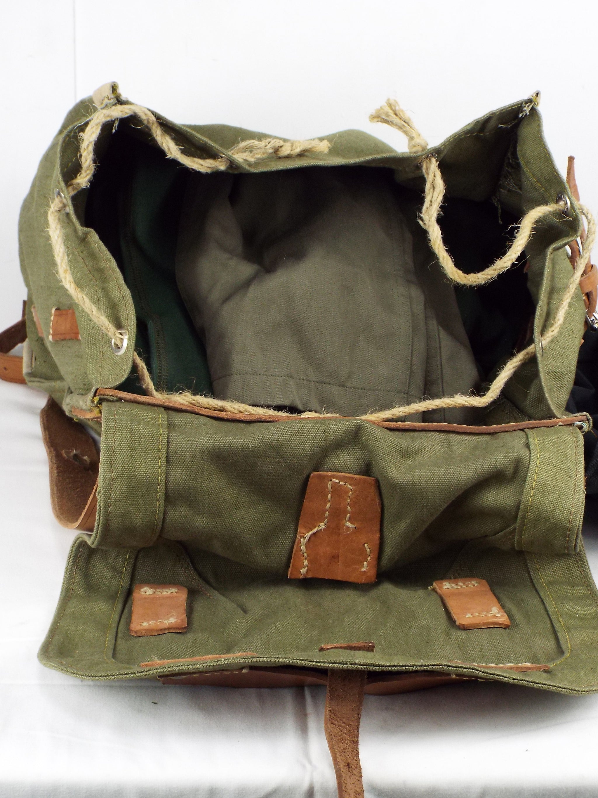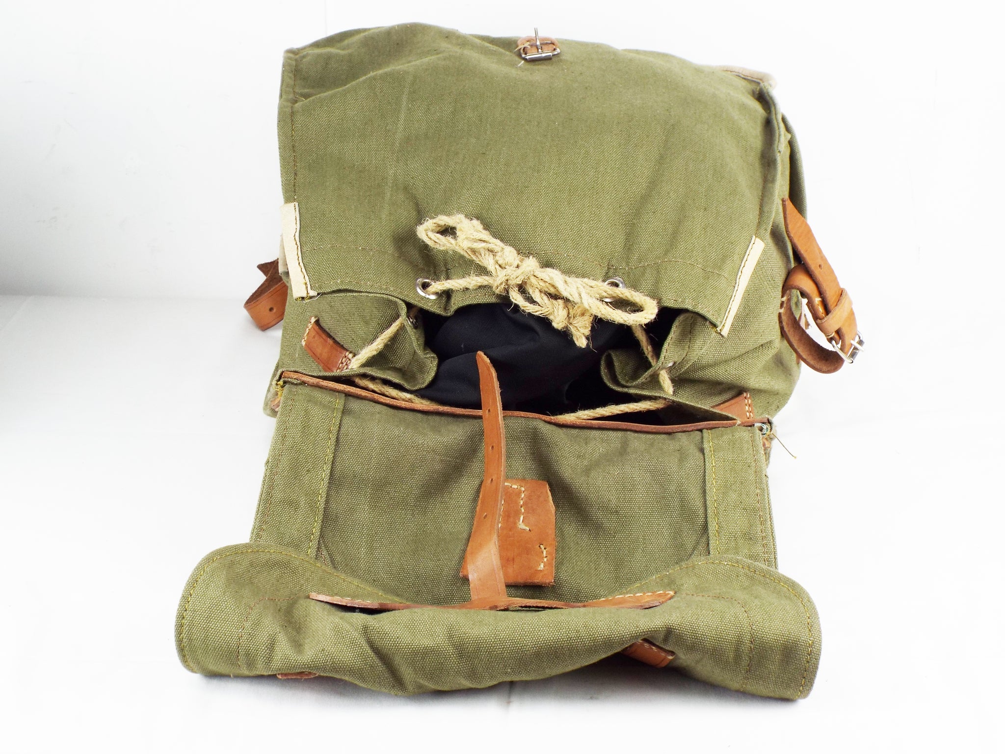 This is an extremely high quality and classical vintage rucksack from the Romanian Army. As it's made from hardwearing canvas fabric, and real leather shoulder straps, you can be sure the bag will provide many years of reliable service.