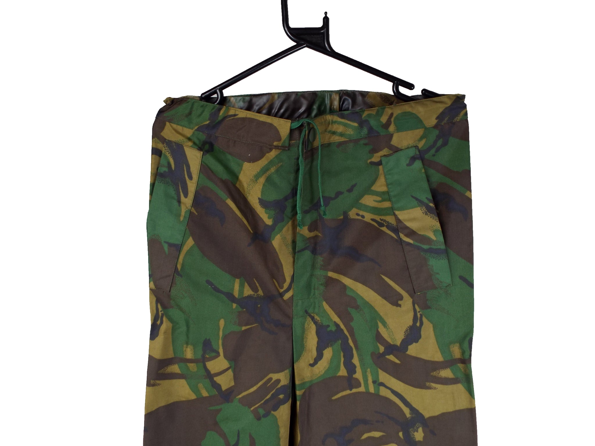 These British army PVC trousers are genuine UK military surplus and come in woodland DPM (Disruptive Pattern Material) camouflage. Made from a waterproof PVC material, these trousers will keep your dry in most foul weather conditions.