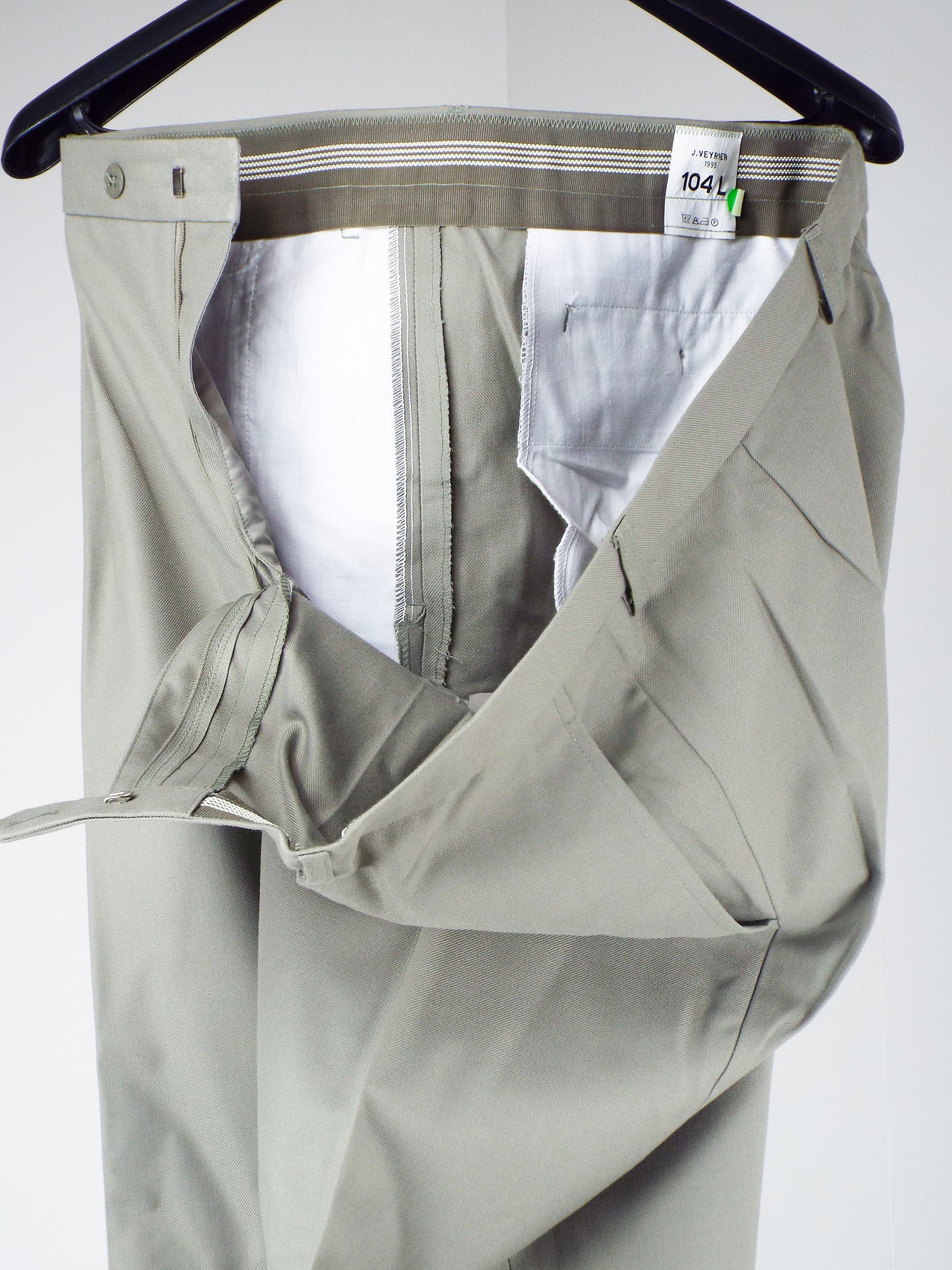 Note! These trousers are intended for use tucked into high boots and so the hem is not finished squarely. So the leg will require hemming if they are to be used outside of boots or with shoes. Please see the French Army photo to see them in action.