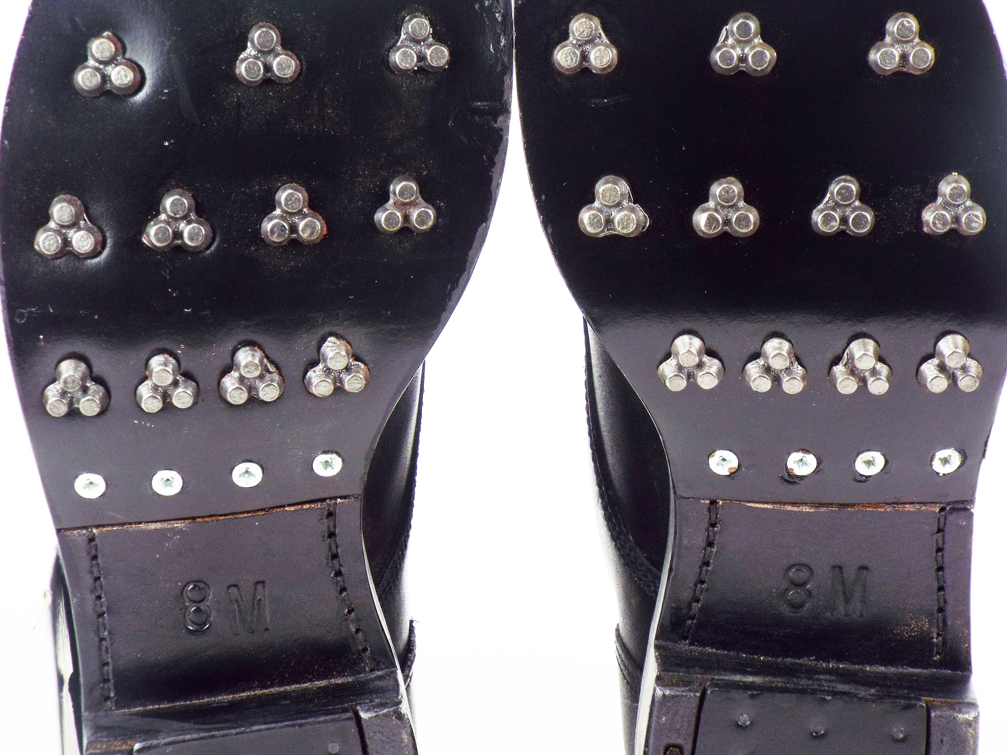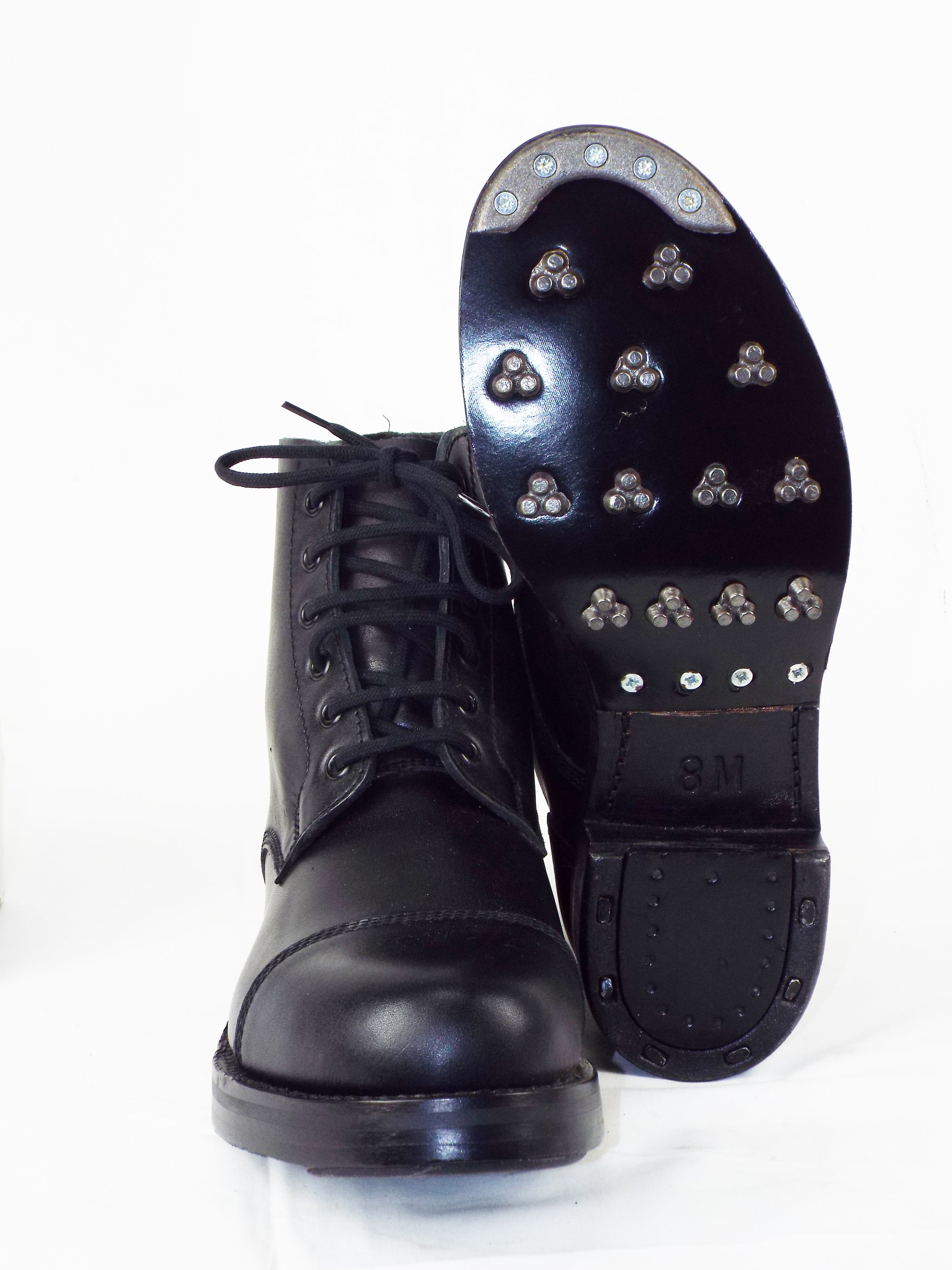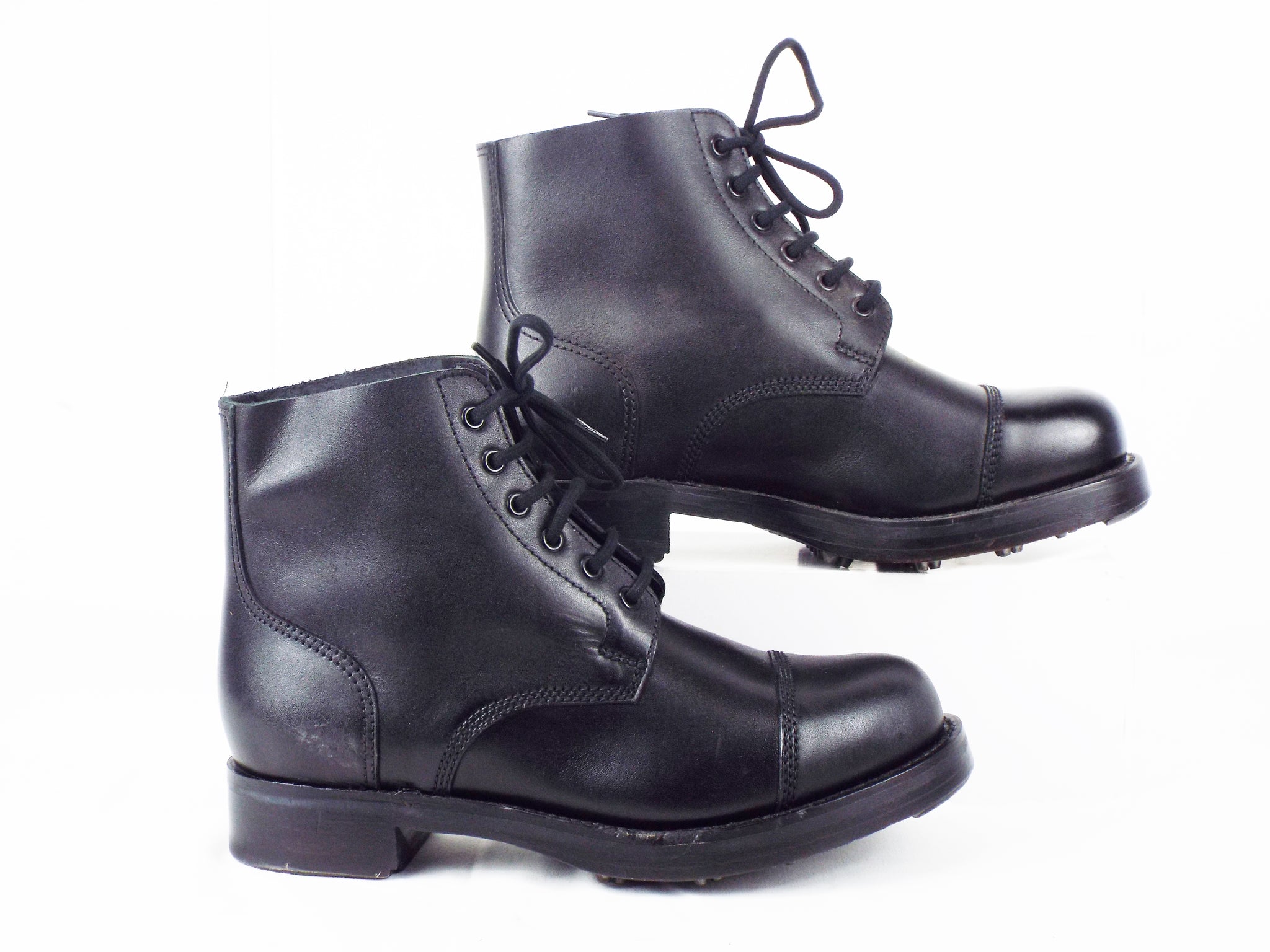 These genuine British Army black rugged ammo boots are the real deal. Designed for practical, heavy-duty use, you can be sure that the boots were built to last. Made from a tough durable leather with hob-nail studs for long-lasting durability. The soles even have screws and the heals have nails holding them in place, tough stuff indeed from a time when quality was not scrimped upon.