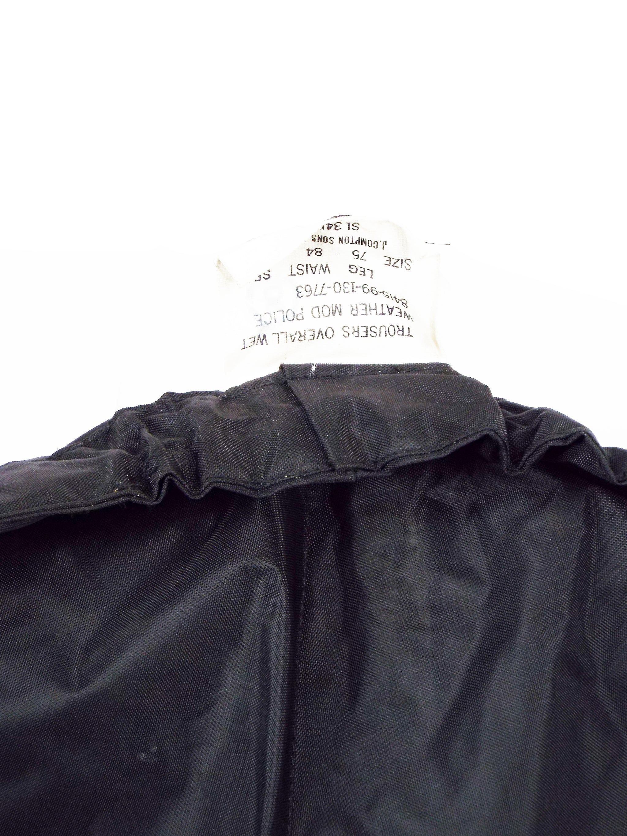 These waterproof over trousers are British MOD Police surplus. They are made of 100% nylon fabric.