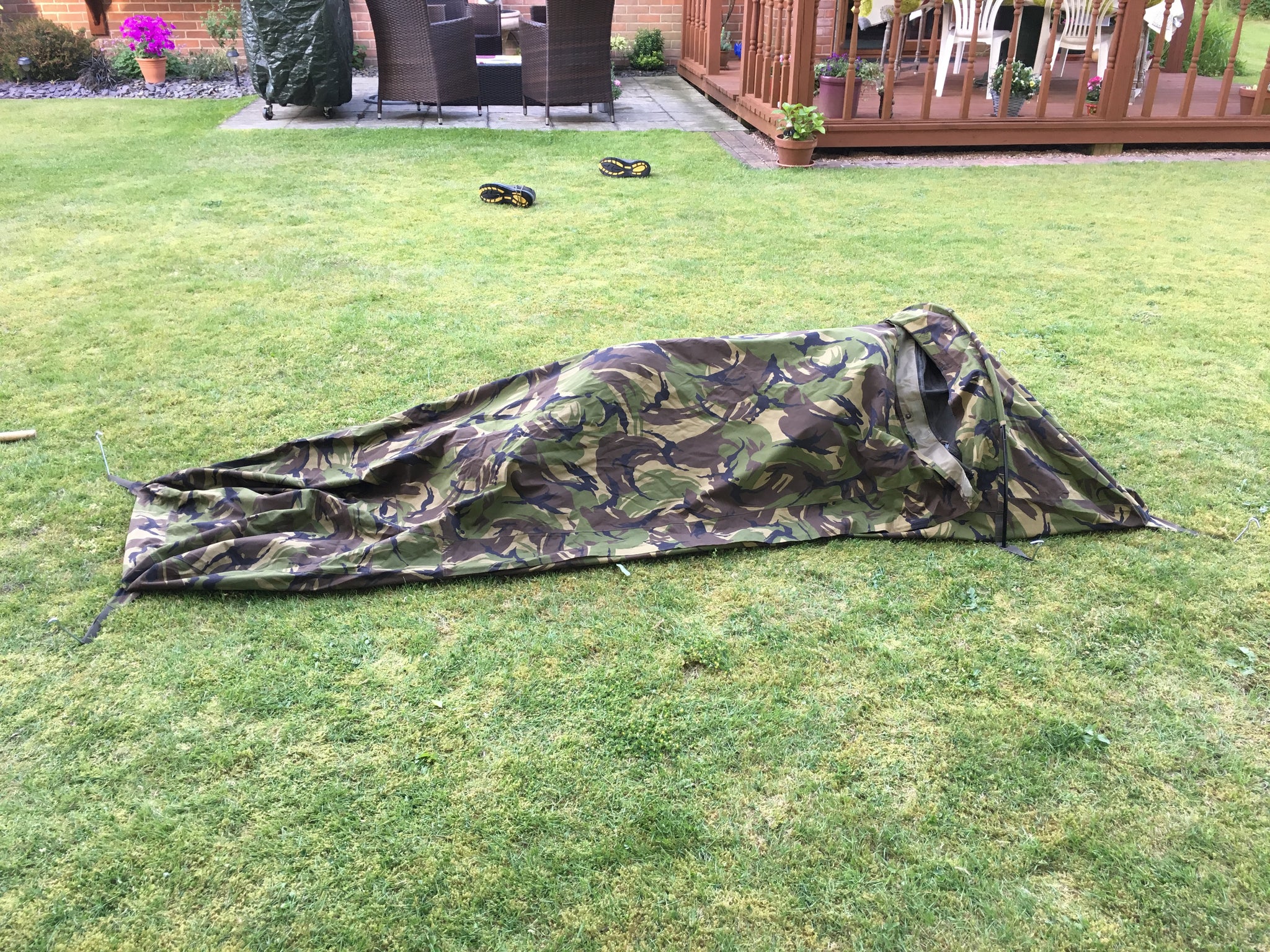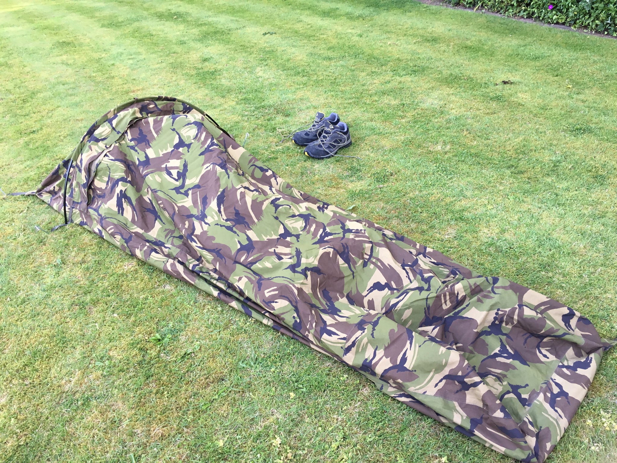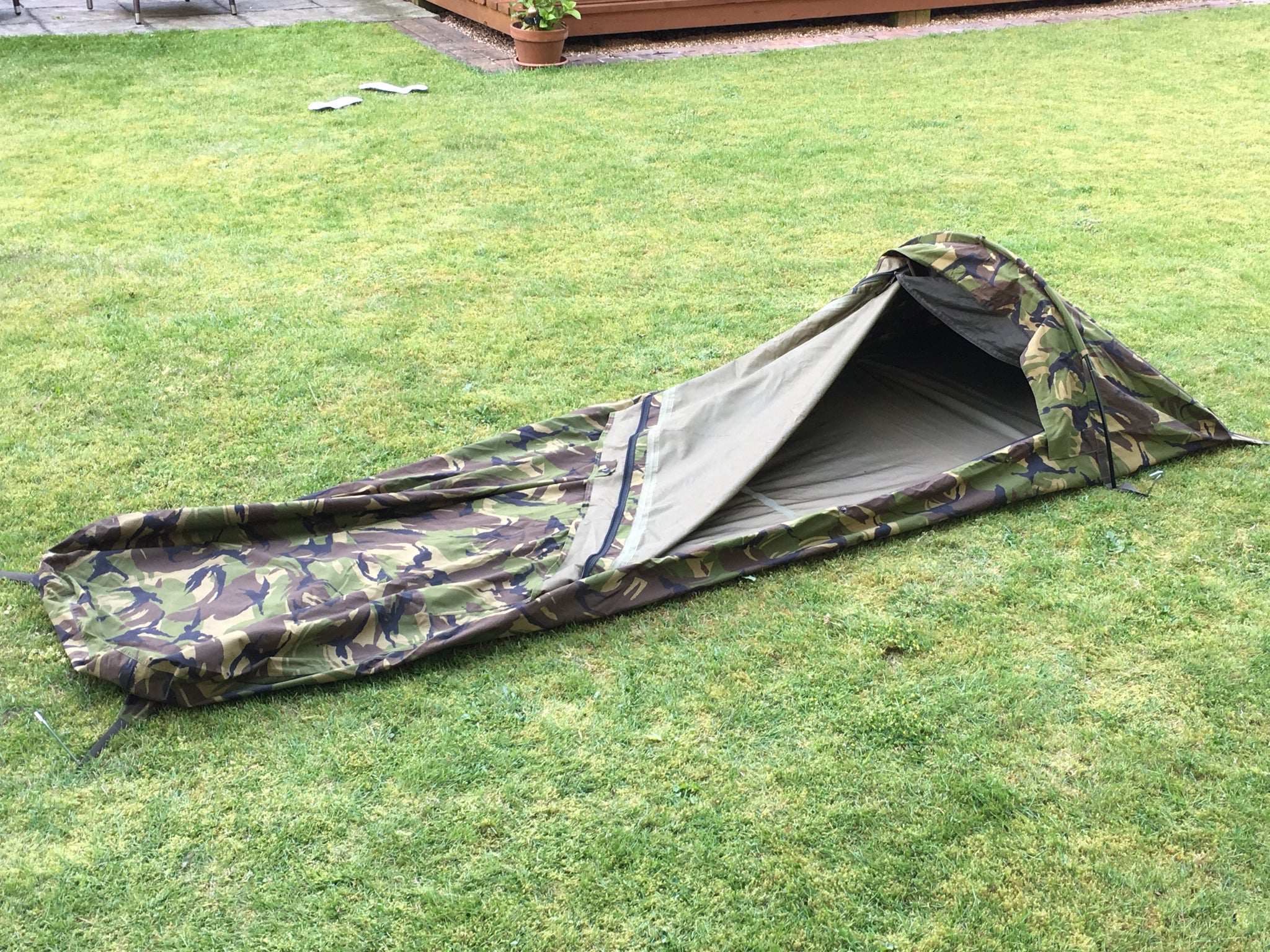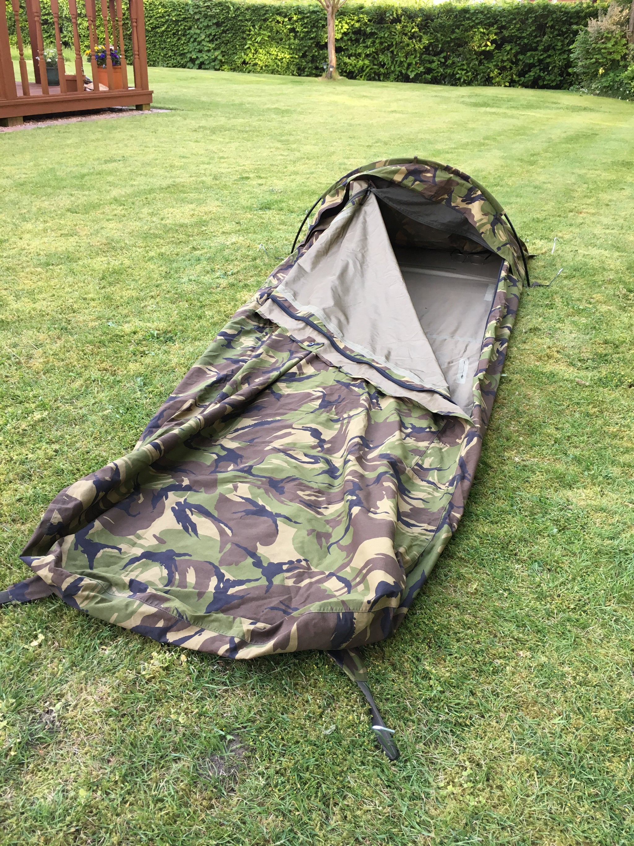 This genuine military bivvy bag comes in Dutch DPM woodland camouflage very similar to the British military, and comes complete with the sectional aluminium pole and pegs.
