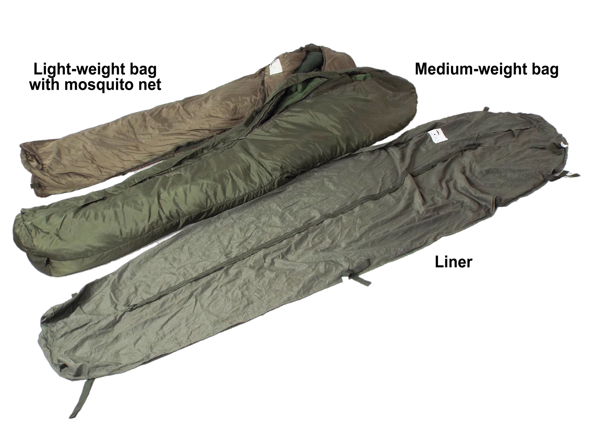 COMBO - Dutch NATO Military - Four Season/Arctic modular (light weight and medium weight sleeping bags system - and string carry sack