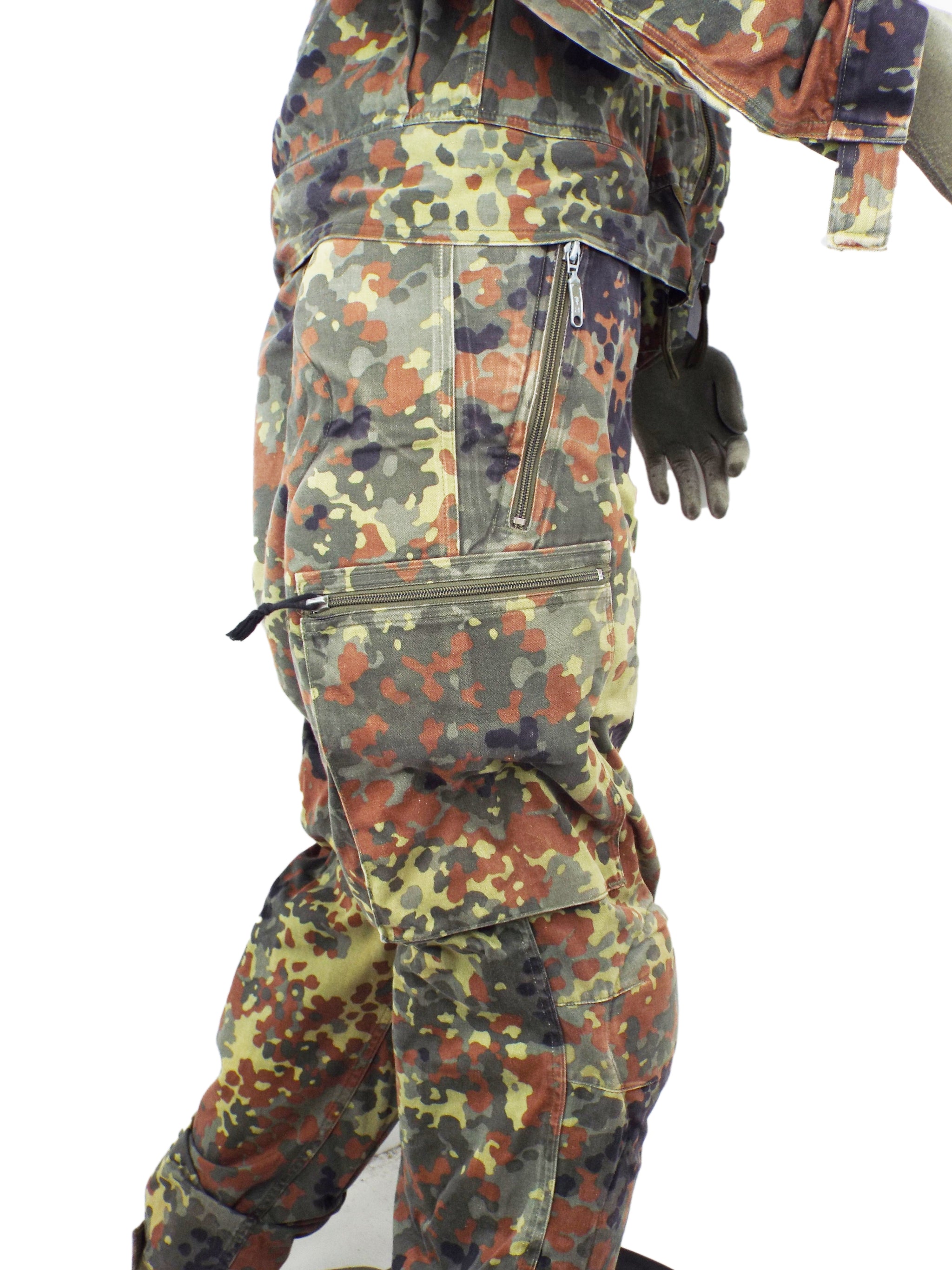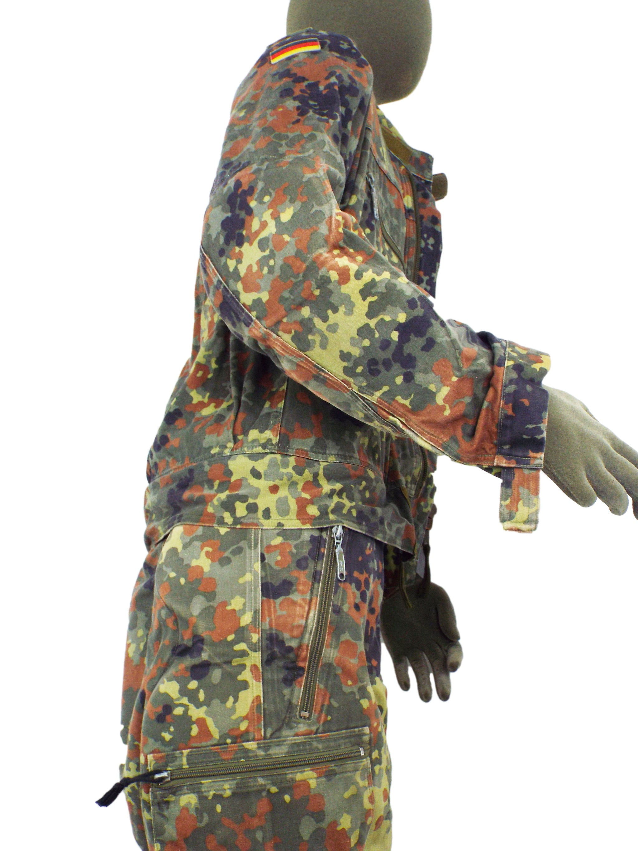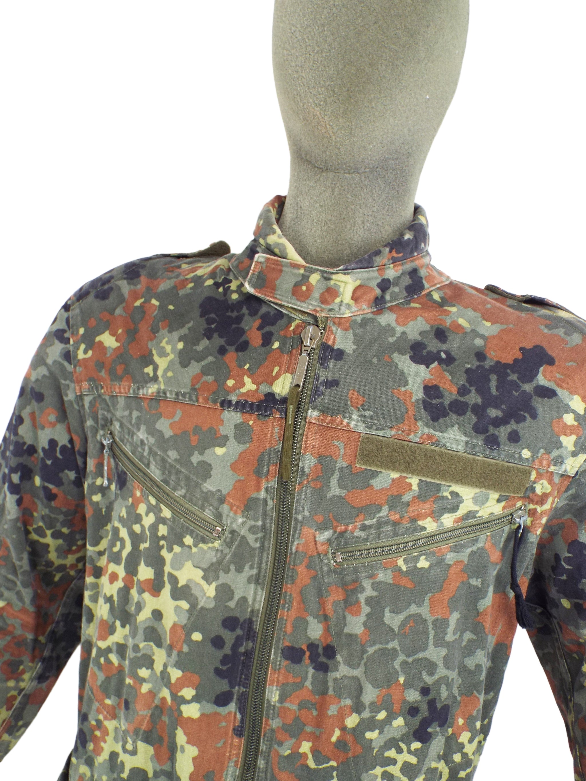 Genuine German military surplus army padded overalls. Made from heavy-duty poly/cotton these coveralls are very hard wearing and will take a lot of punishment. They come in German Flecktarn camo pattern with a zip front and shoulder epaulettes. Excellent hard wearing overalls ideal work wear.