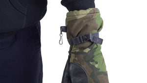 Genuine Austrian army mittens with Gore-Tex branded lining. Other features include: Extra long cuff to keep hands and wrists warm. Mittens can be clipped together when...