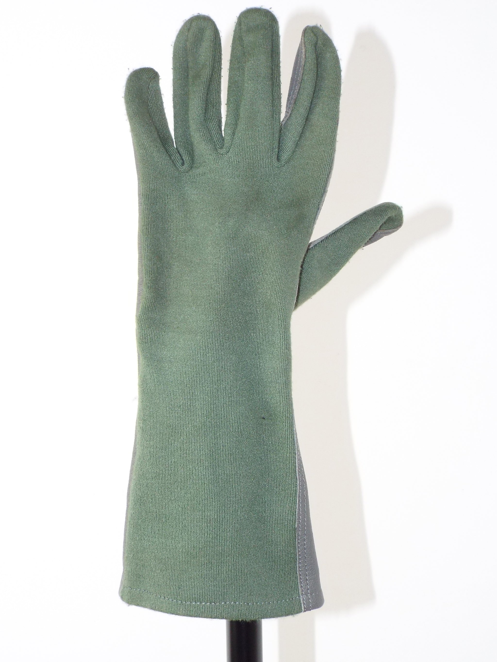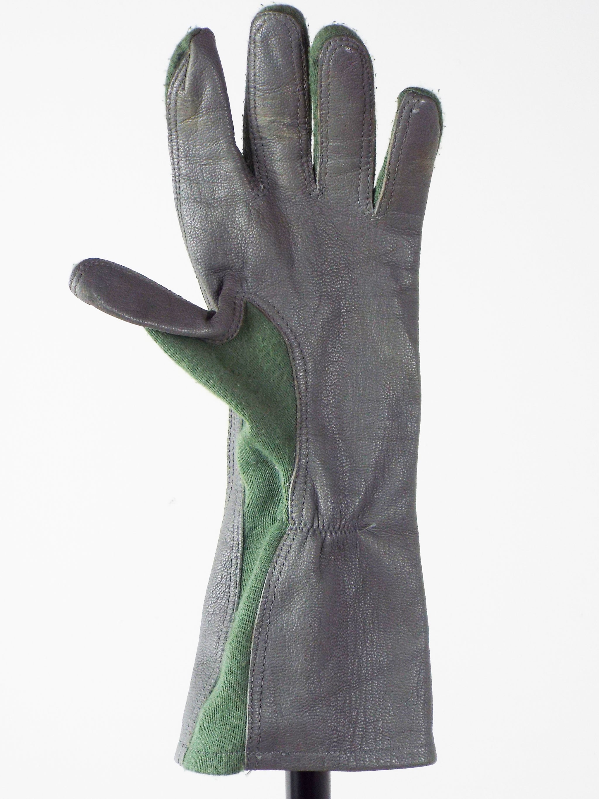 These military issue gloves are designed for aeronautic use and the Nomex fabric section is made of fire resistant fibres. The leather sections are supple and so ensure a good feel is maintained whilst handling the yolk of the aircraft.