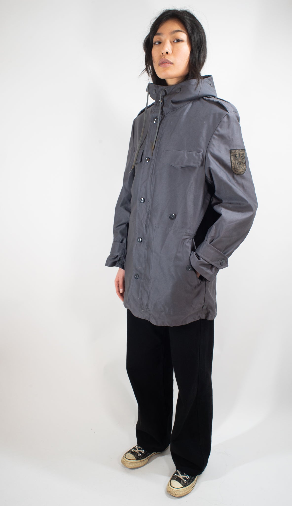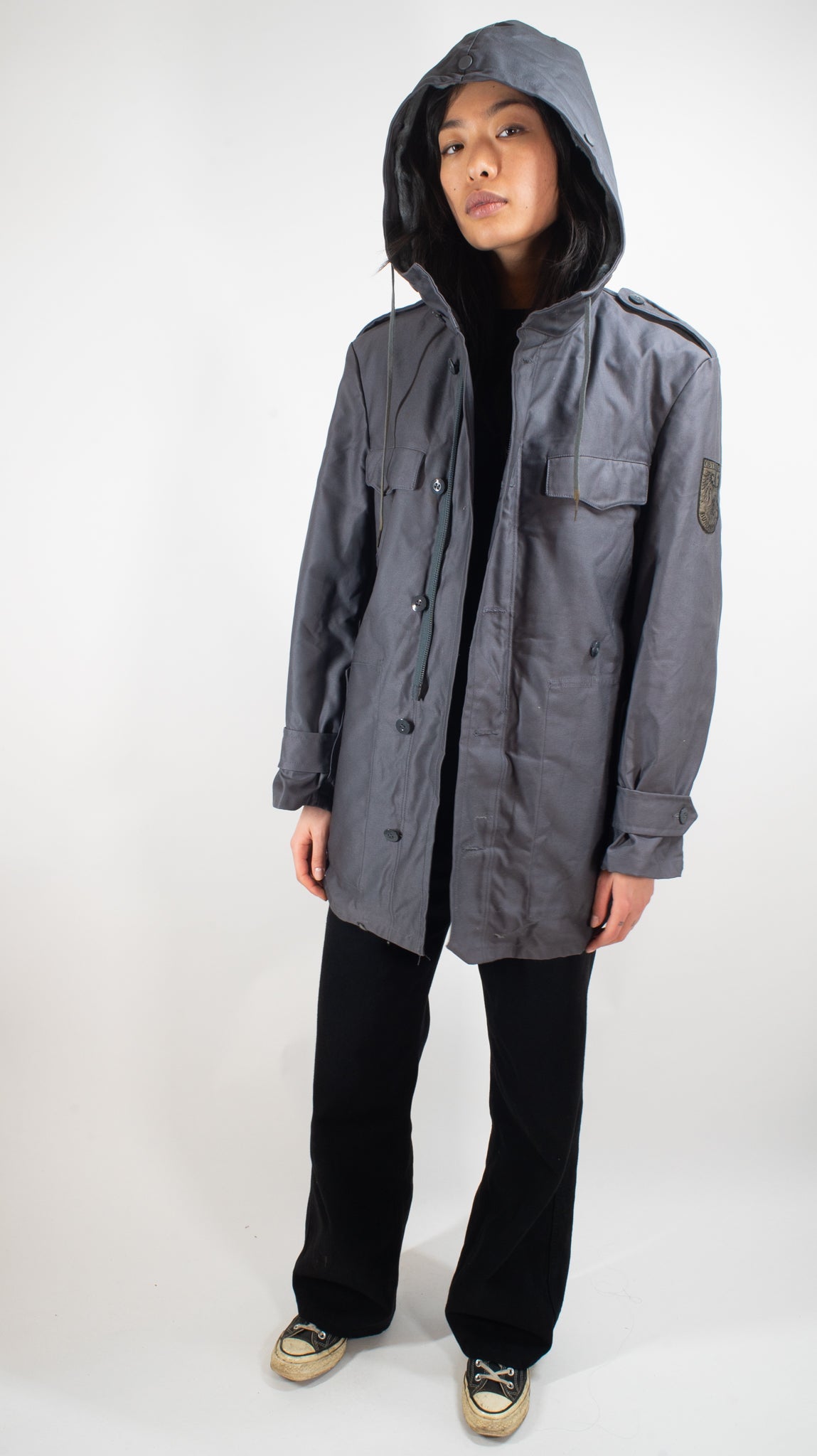 This grey German army parka is genuine issue and was originally designed for the civil defence forces. Made from a heavy duty hard wearing cotton blend outer with a detachable synthetic fur/fleece inner lining that can be removed to be worn during milder weather.