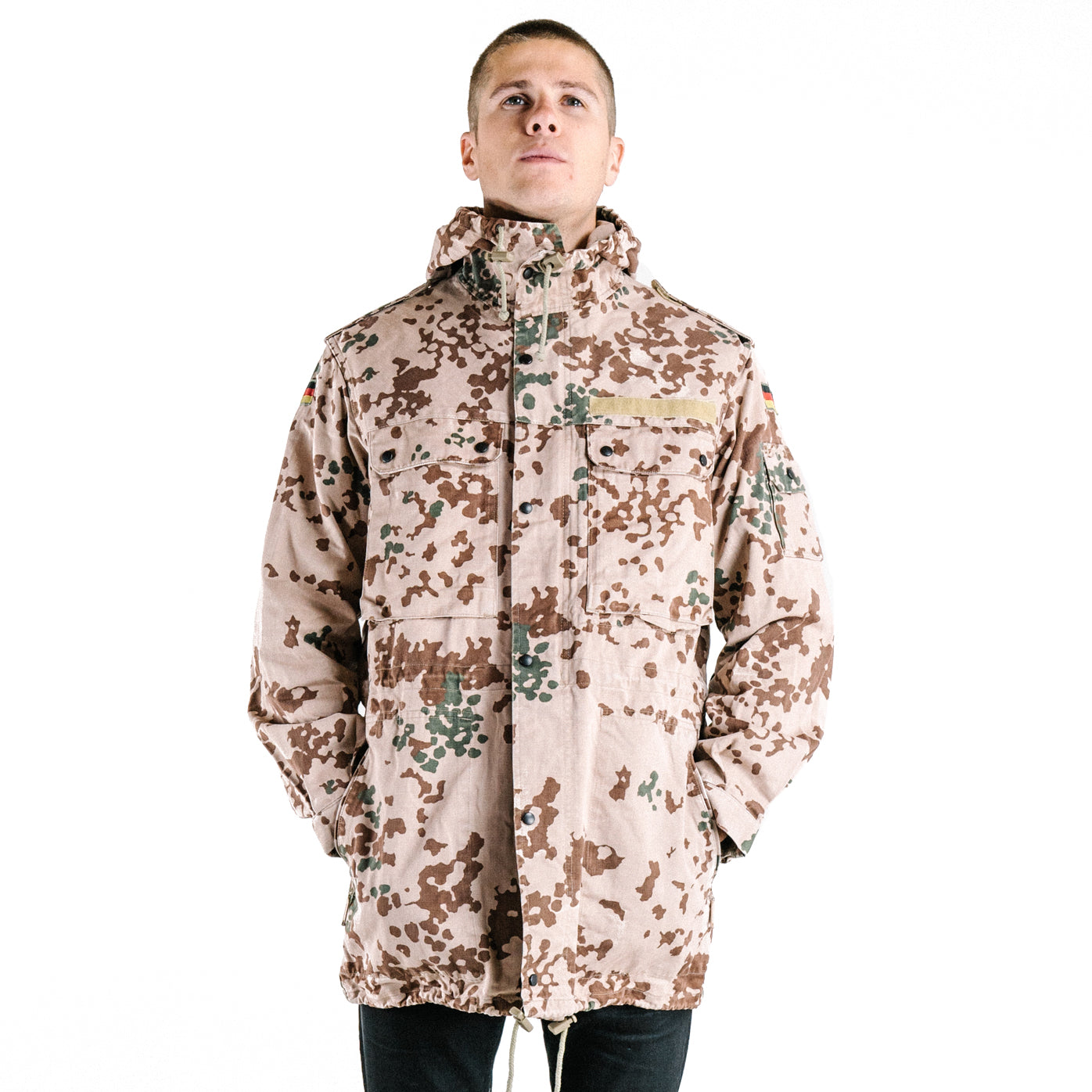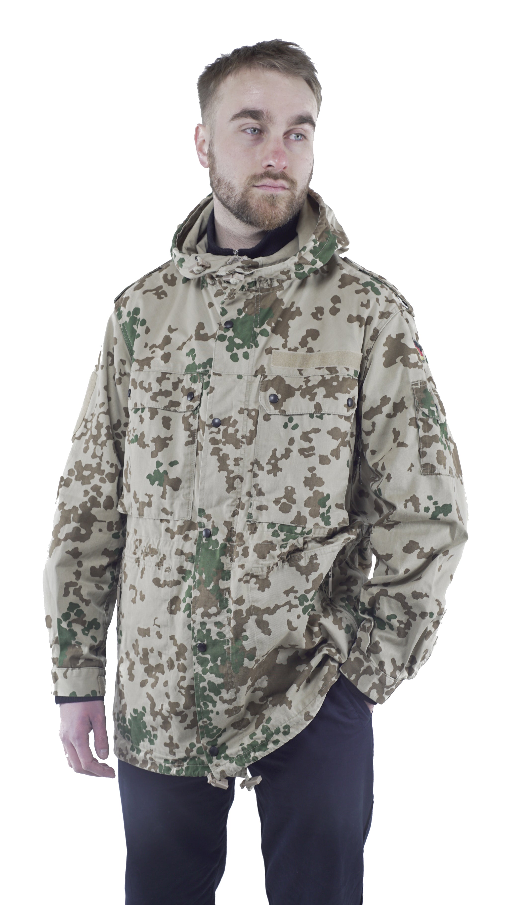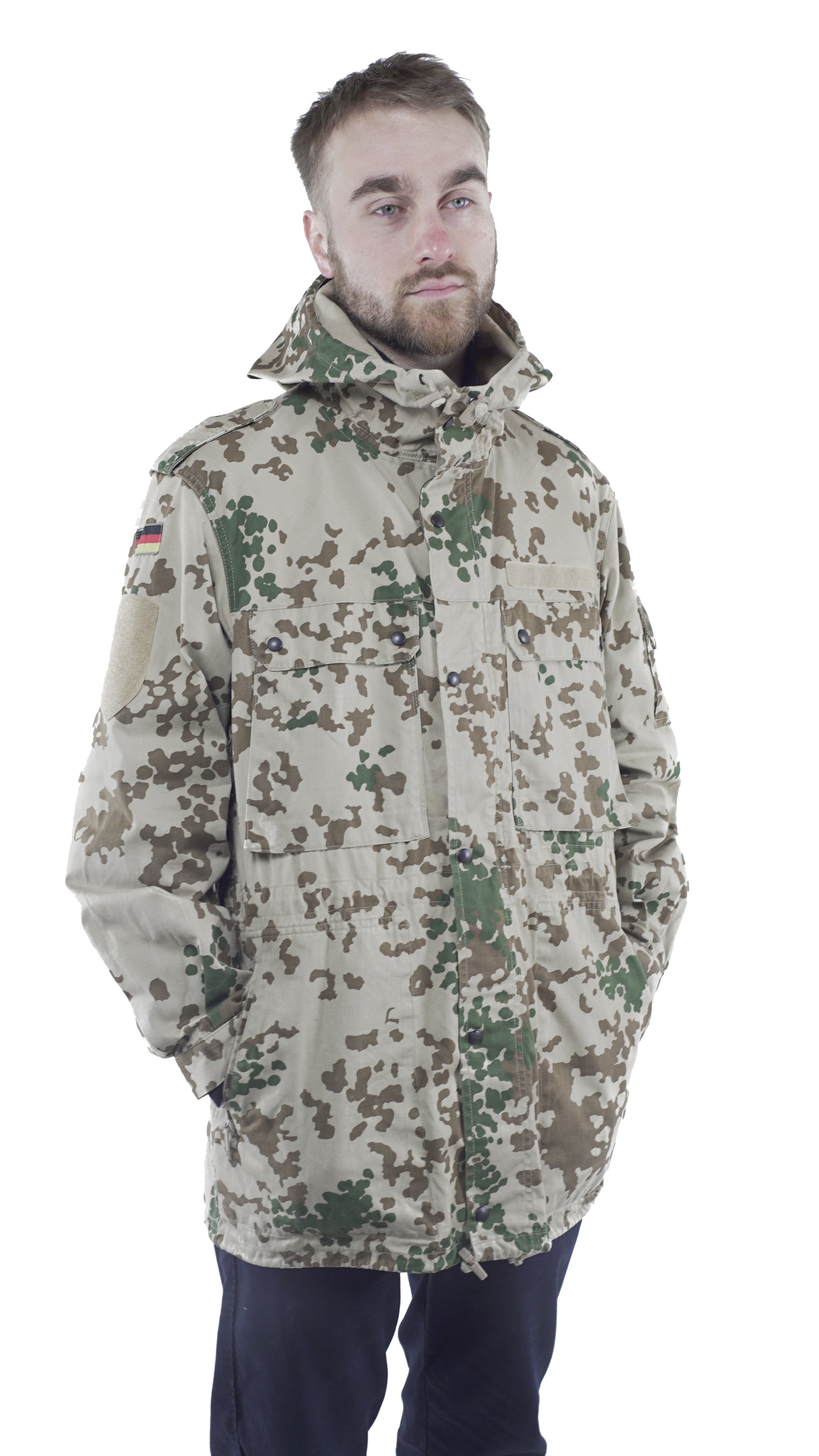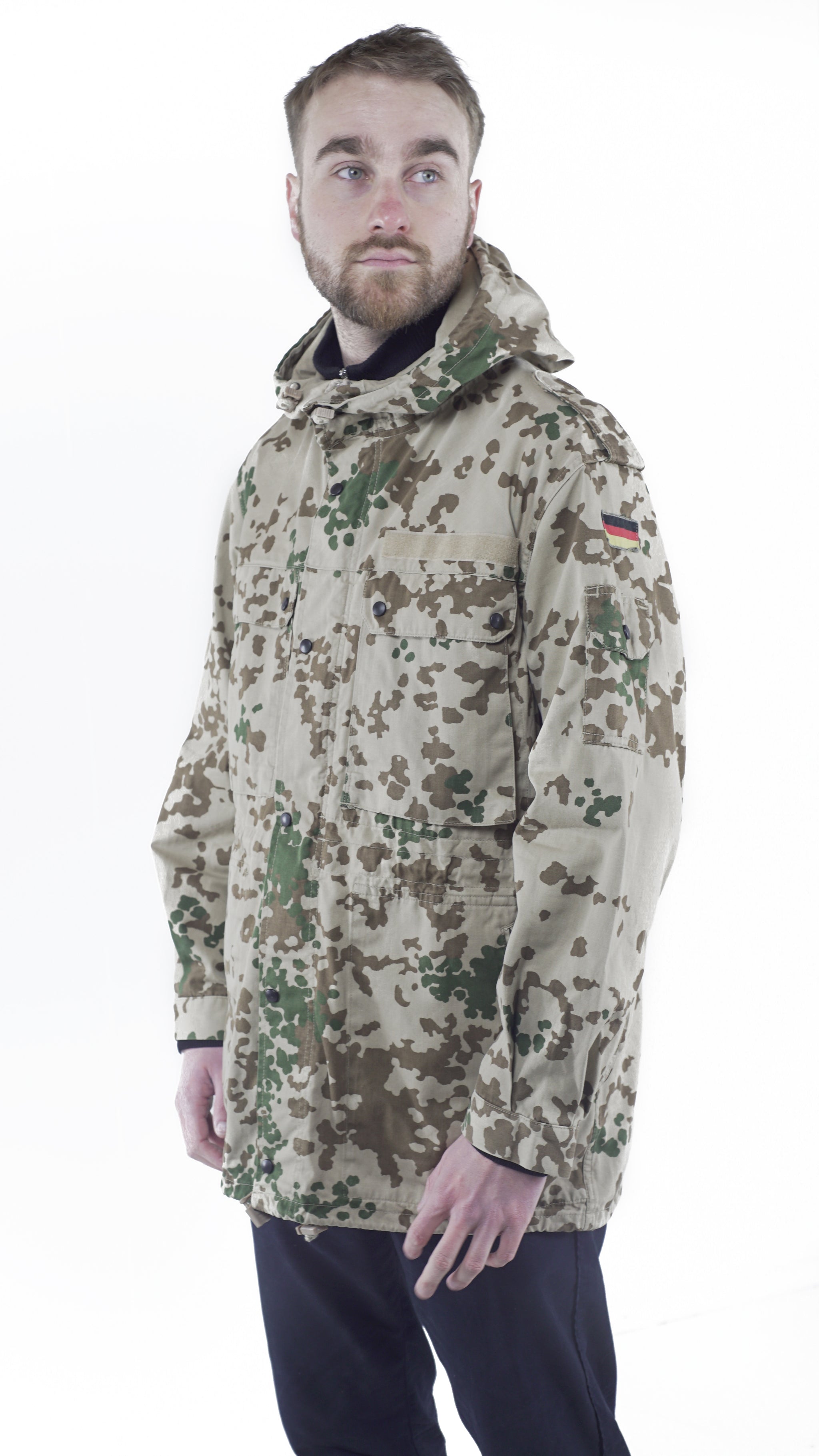 This German army tropentarn parka is a real military surplus classic and one of our most popular coats! They are genuine Bundeswehr issue so as you would expect they are built to last, made from heavy duty cotton in German three colour tropentarn (desert) camouflage, a very distinctive and well-suited camo pattern.