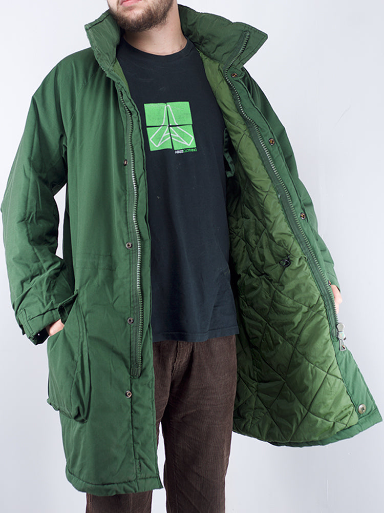 Genuine extreme-cold weather M90 parkas from the Swedish Army, these coats are made from a weatherproofed 50/50 poly-cotton shell and a thick yet light quilted inner lining. They come in olive green with an attached thick padded hood to keep you warm in the lowest of temperatures. These parkas have two outer pockets secured by poppers, and are fastened by a robust plastic zip and popper wind flap.