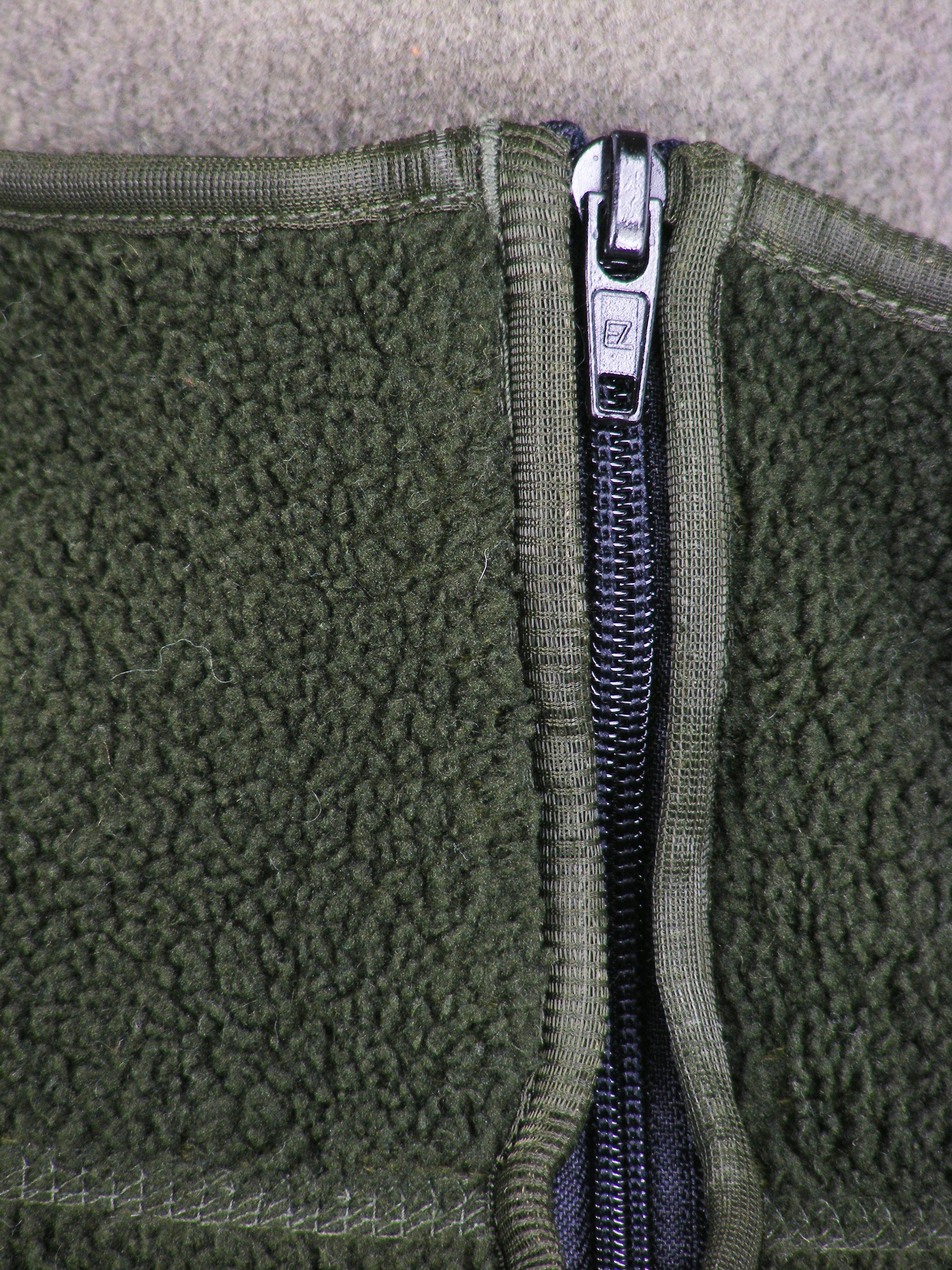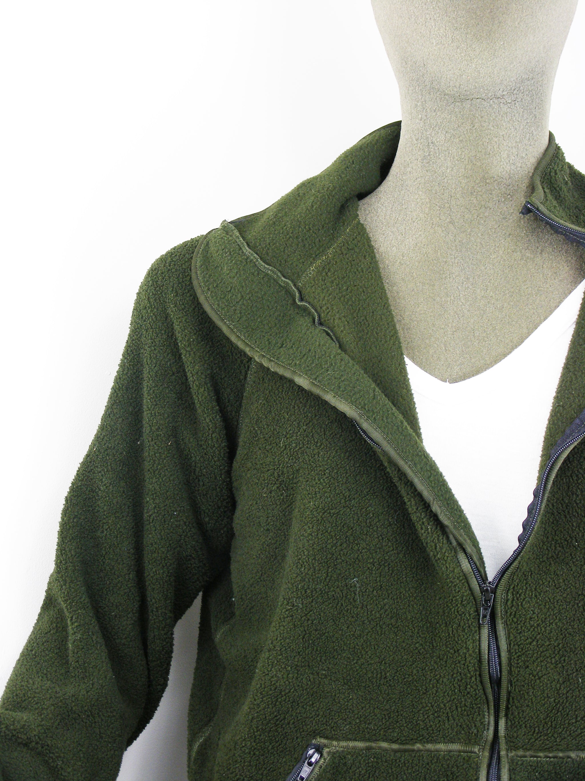 Simple dark green fleeced jacket with the following features: