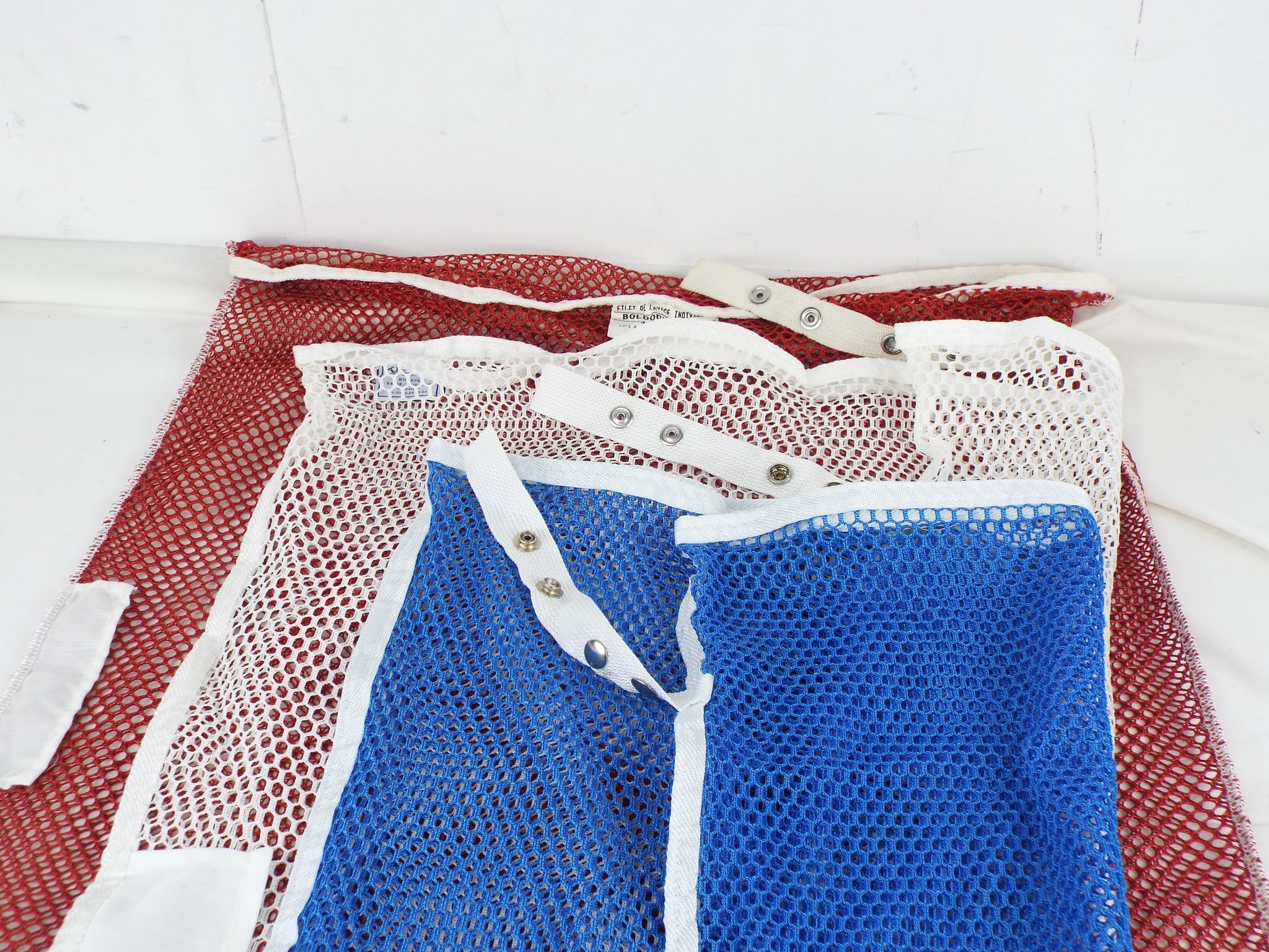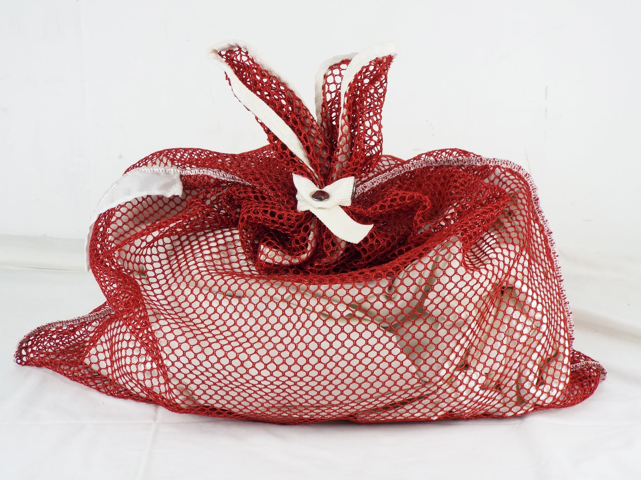 Made of strong polyester thread these string bags are from the French military and were specifically designed for laundering one military individual's garments and keeping everything together.