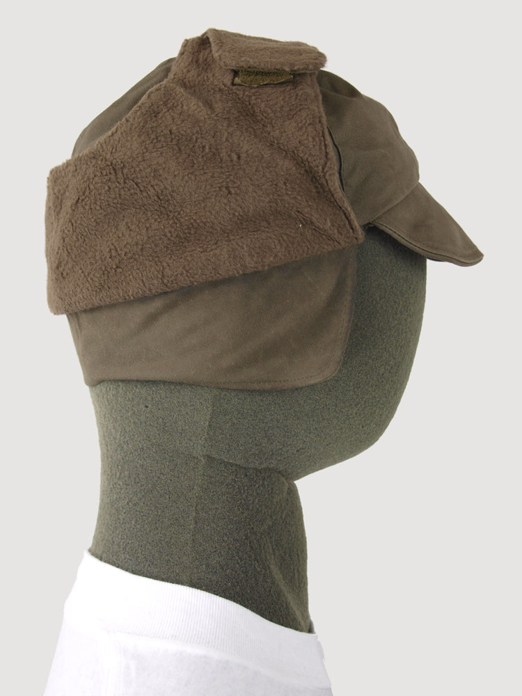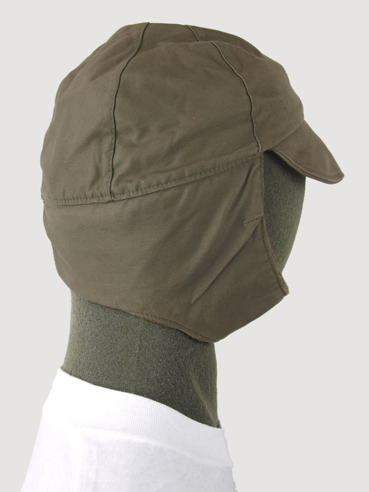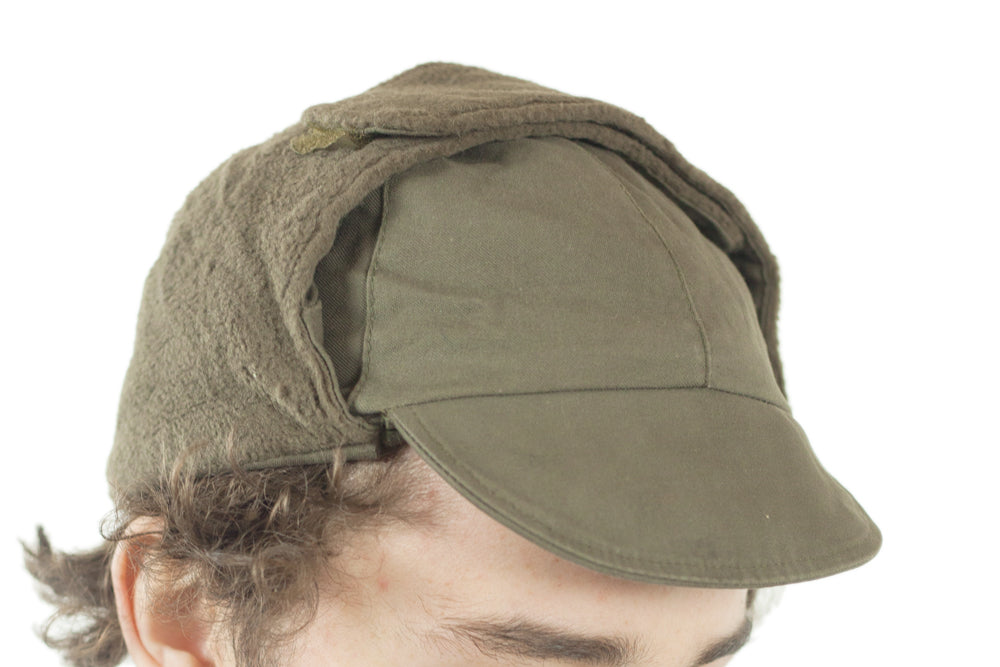 These genuine German Army cold weather hats are very warm and cosy for winter use. As the photos show, just the face is left exposed when the side flaps are folded down and 'velcroed' into place.