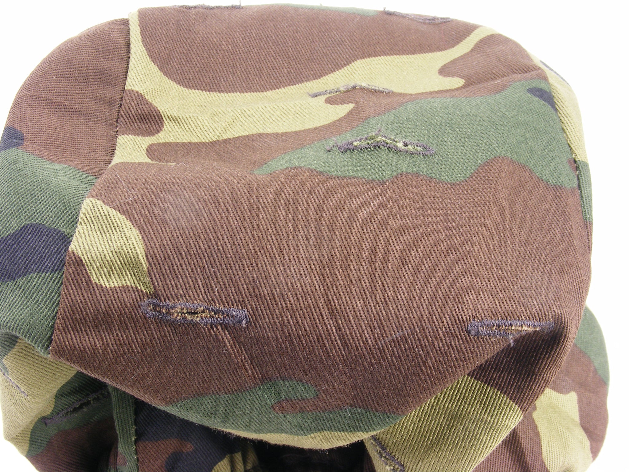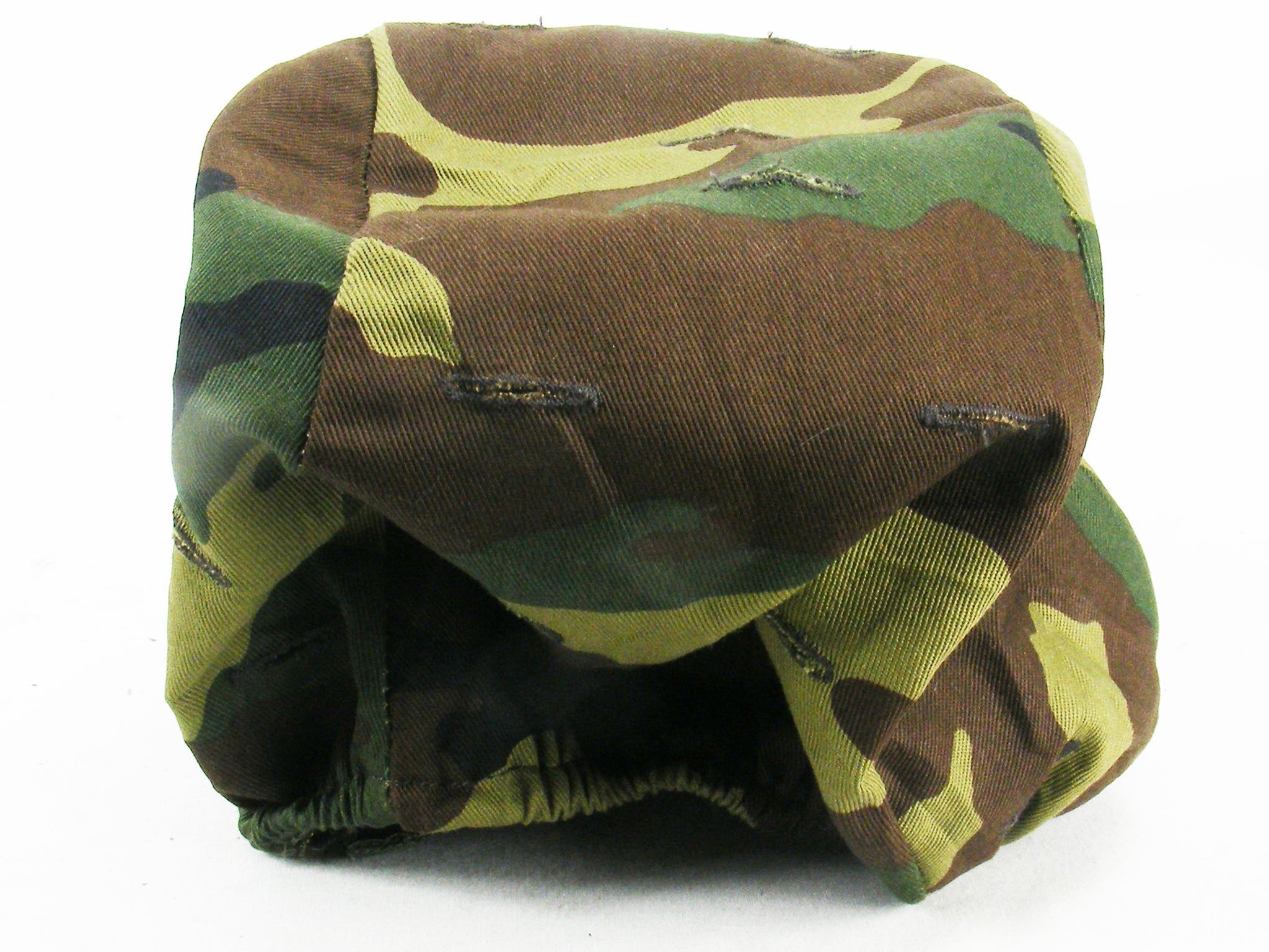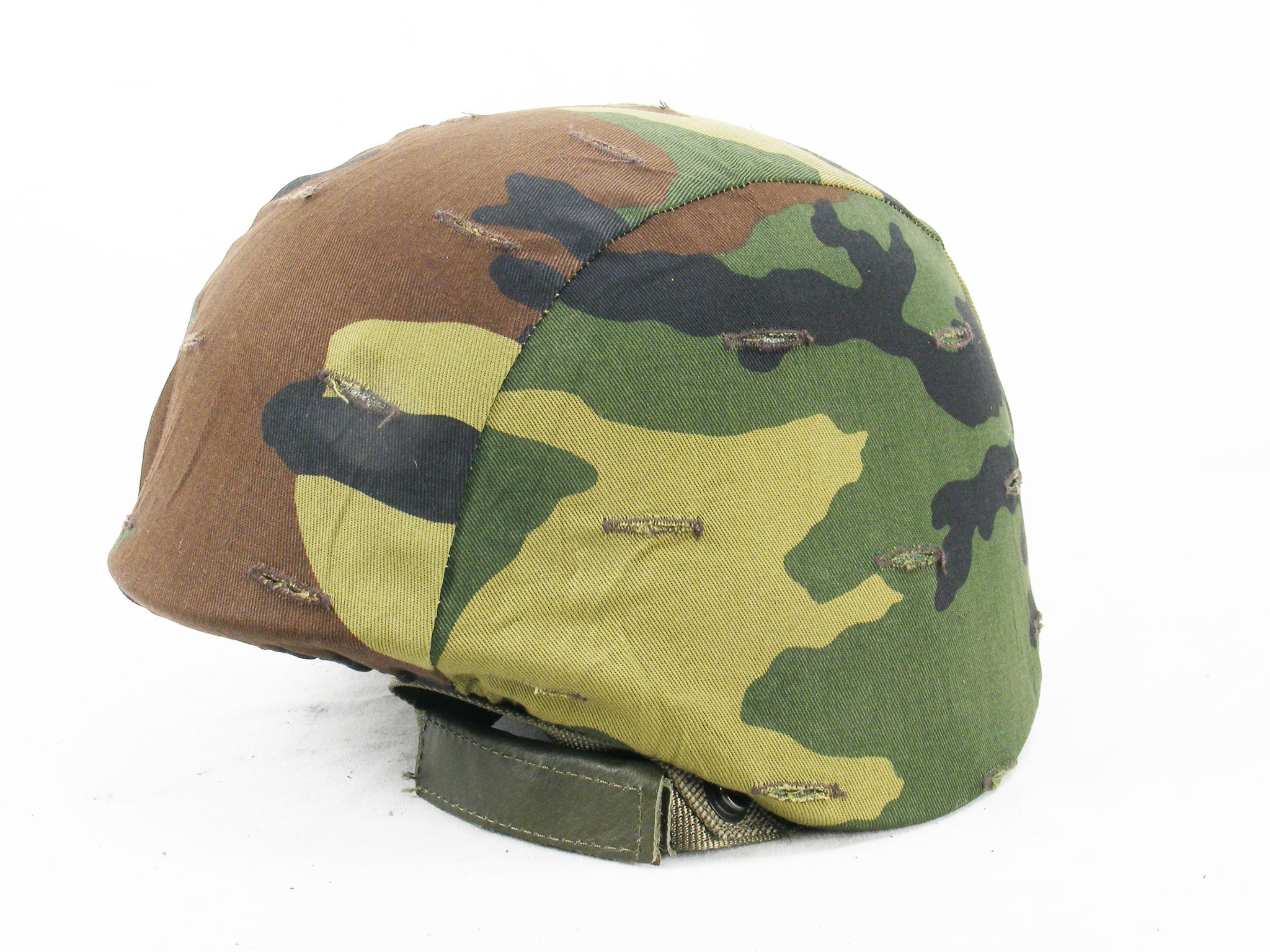 This woodland camouflage cover is specifically designed to fit the small Italian Kevlar helmet. When available here.