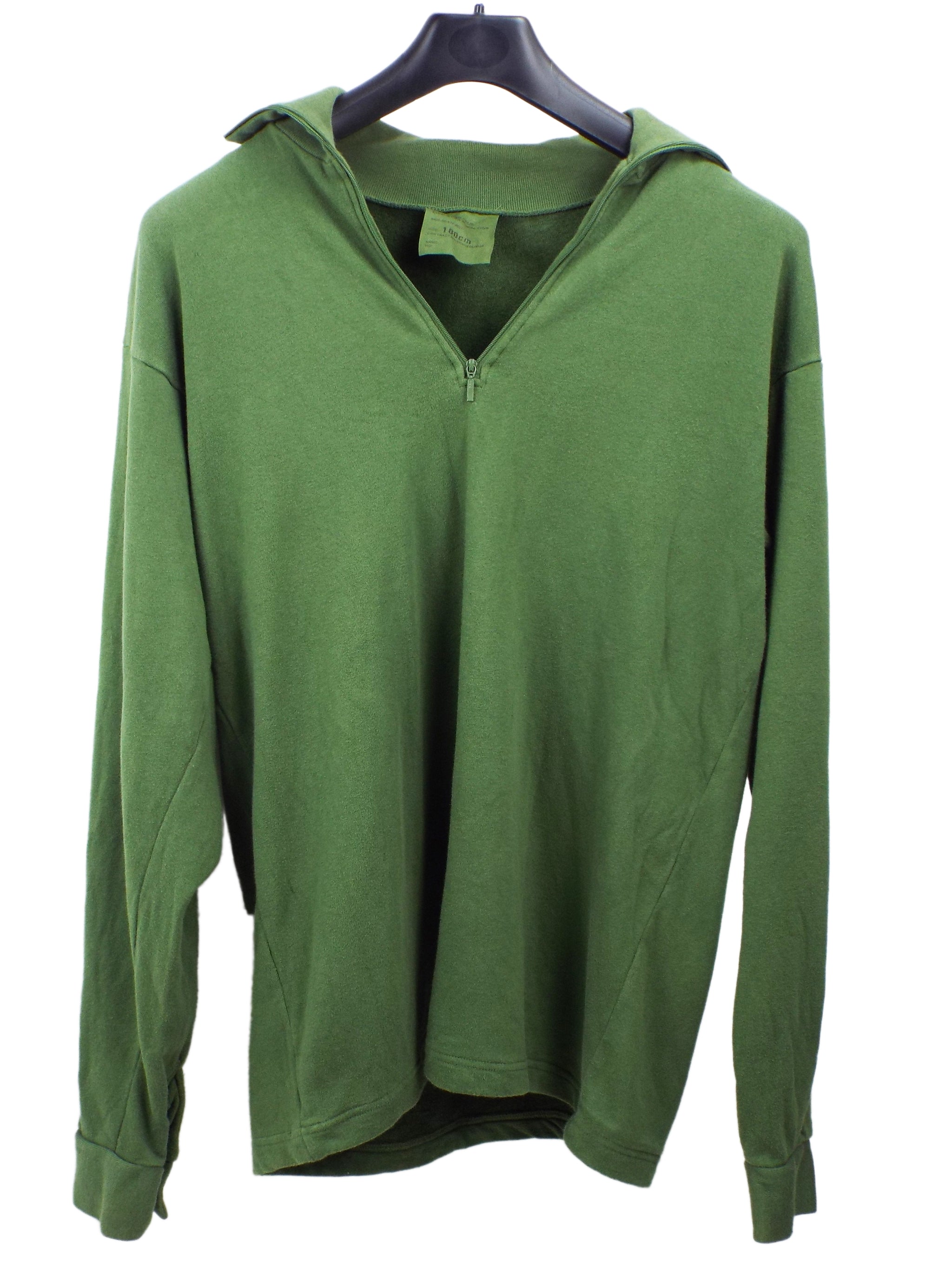 This British military base layer 'Norgie' shirt is genuine army surplus. With a quarter length neck zip and high collar to protect the neck from cold, and button cuffs.
