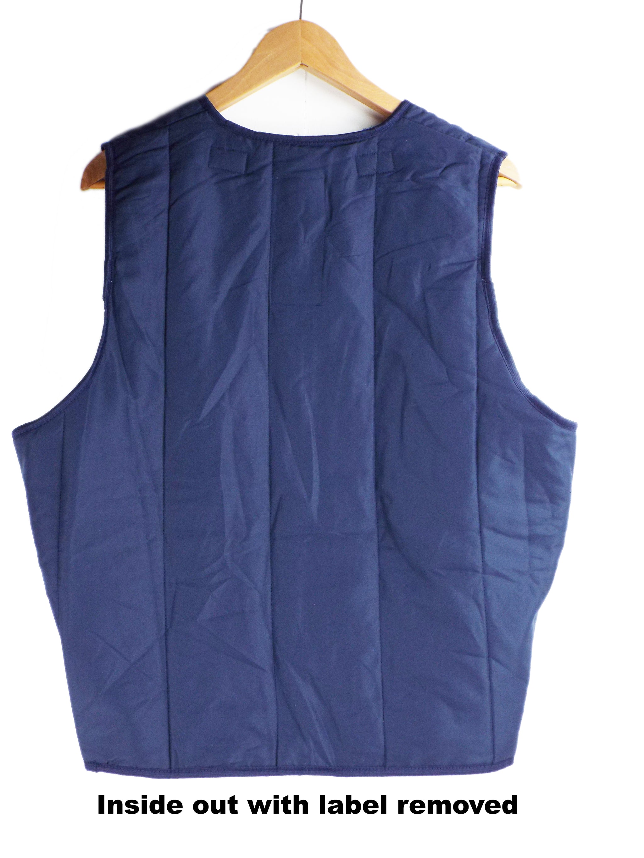 The liner can also be used on its own, as a simple gillet, and by turning it inside out (so that the better looking seams are on display, and by removing the label as shown in the photographs, it does not look too bad at all.