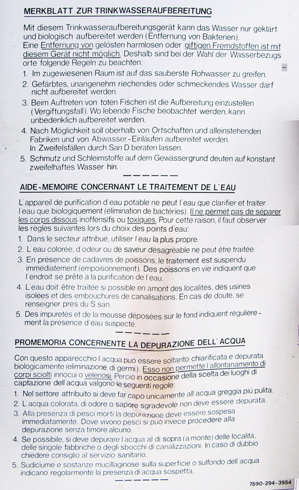 This device removes microscopic particles from good water and so is only intended to produce clear drinking water from reliable sources.