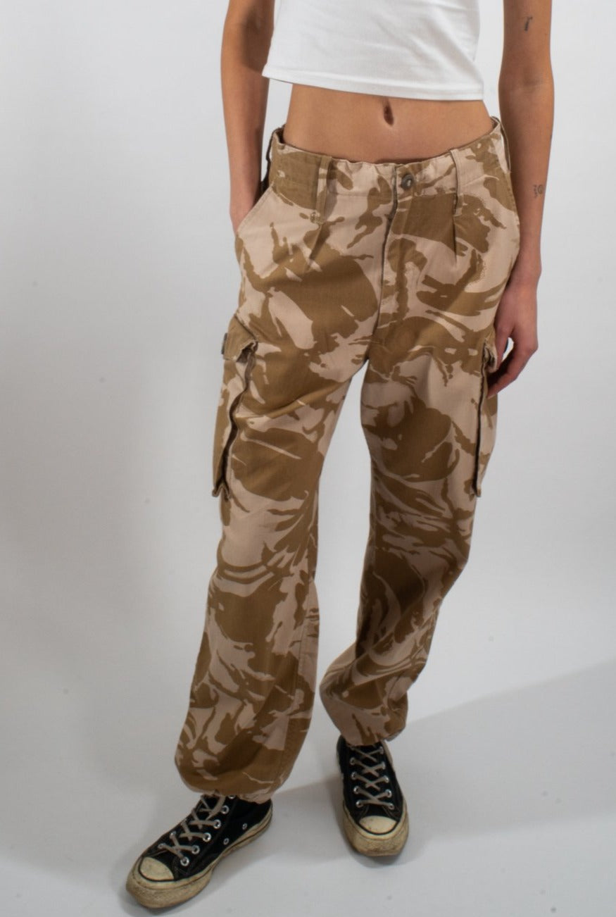 Genuine British military desert camo pattern combat trousers. Suitably durable and lightweight for practical use outdoors. Ideal for British Cadet's, Hunters and Hikers looking for a comfortable and durable pair of lightweight trousers.