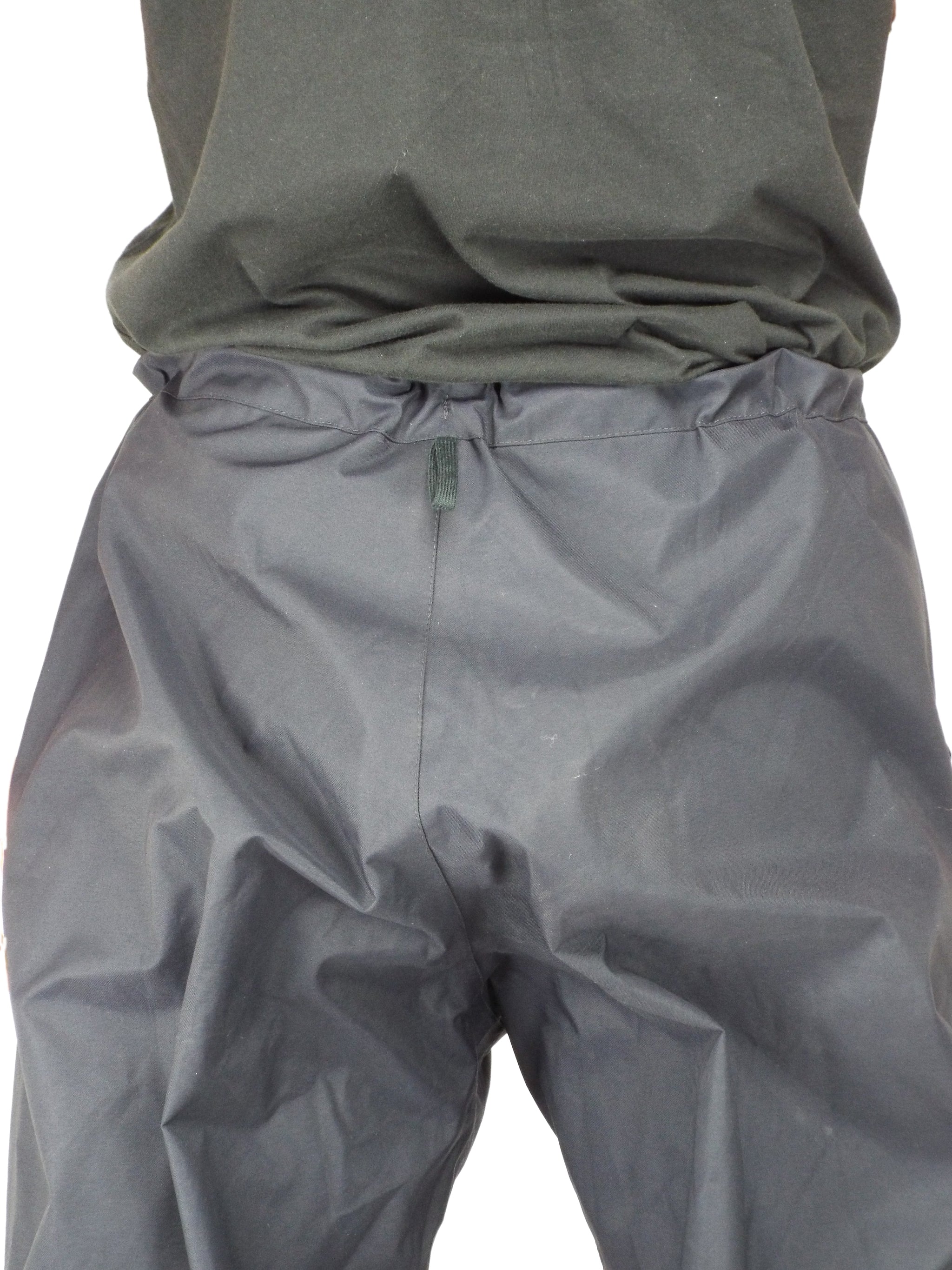 These "Gore-Tex" trousers are genuine military surplus. They are made from waterproof and breathable Gore-Tex-like material that allows sweat to escape in the form of moisture vapour, while keeping out wind and rain.