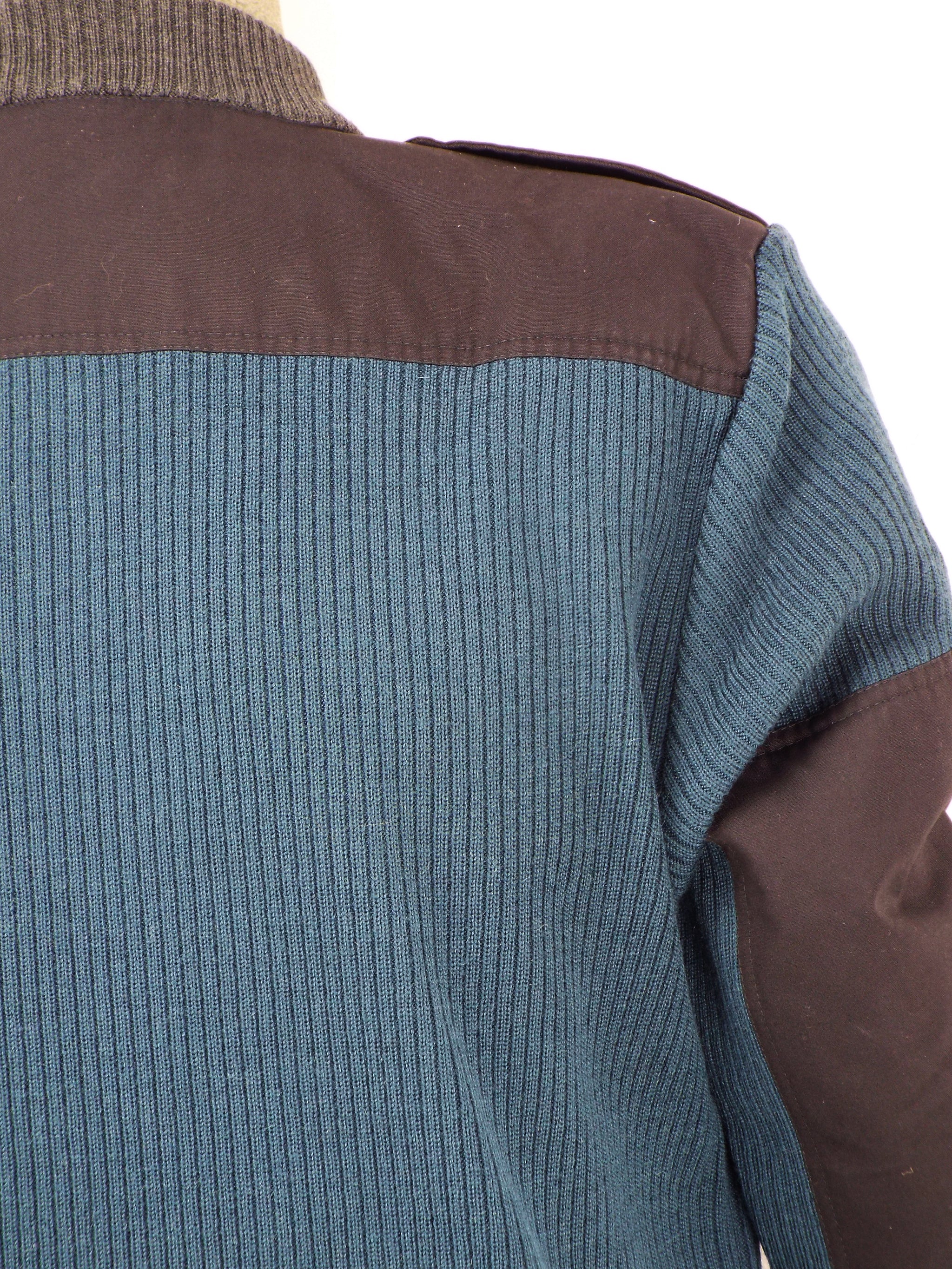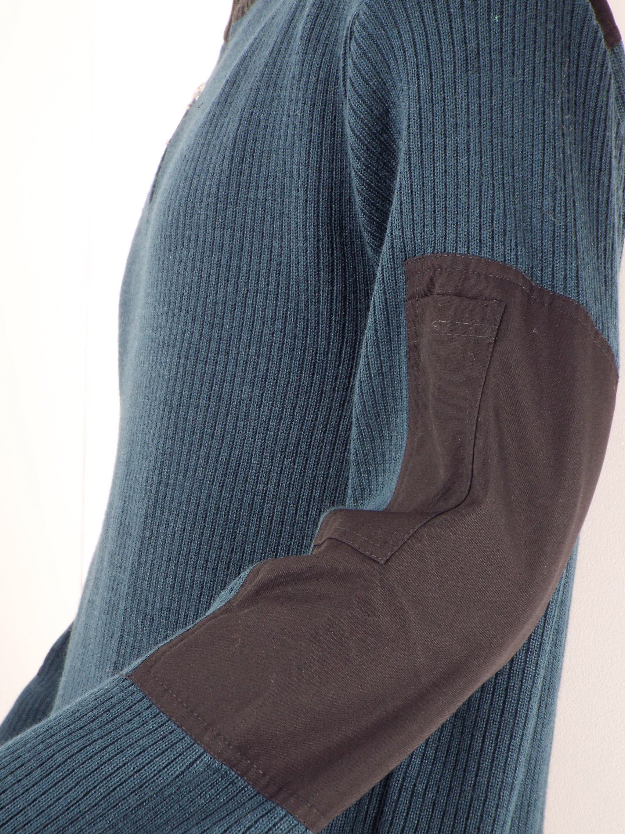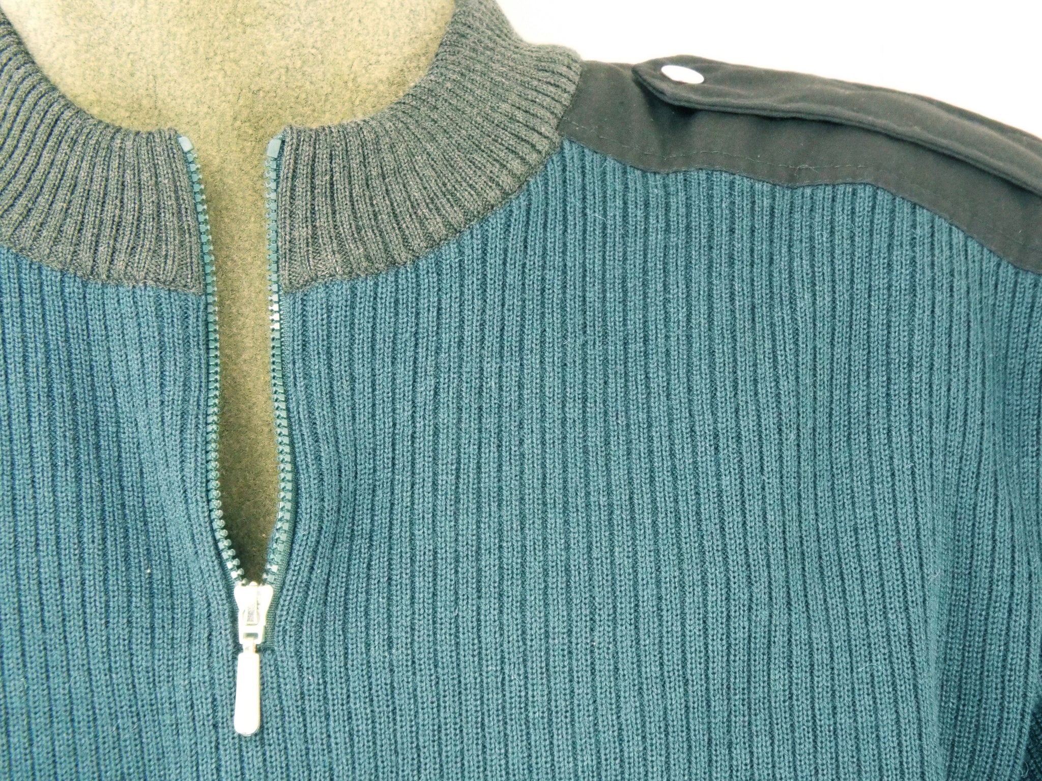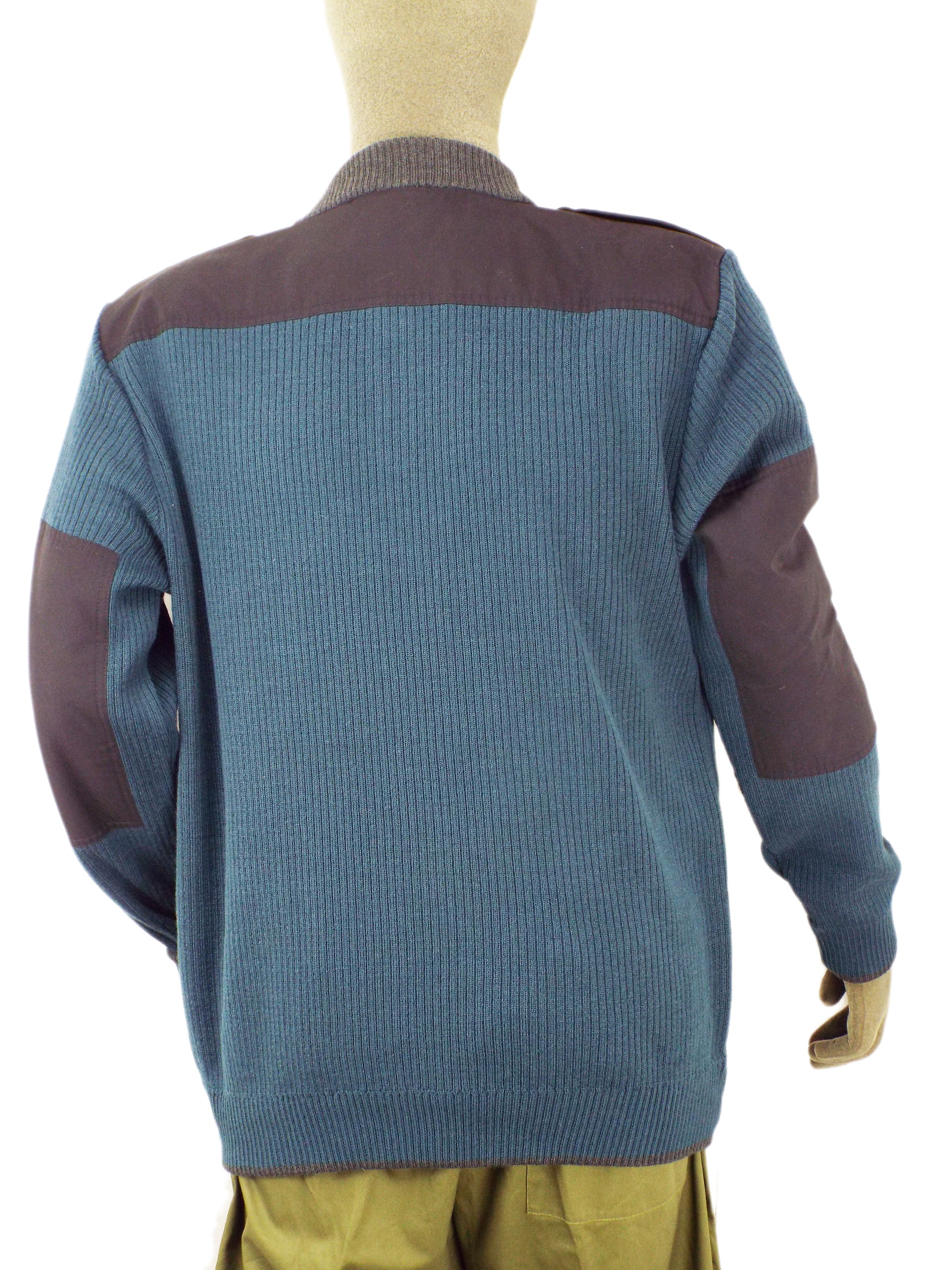 This sweater is a smart and comfortable garment giving the impression of a semi-military appearance in the civilian world.