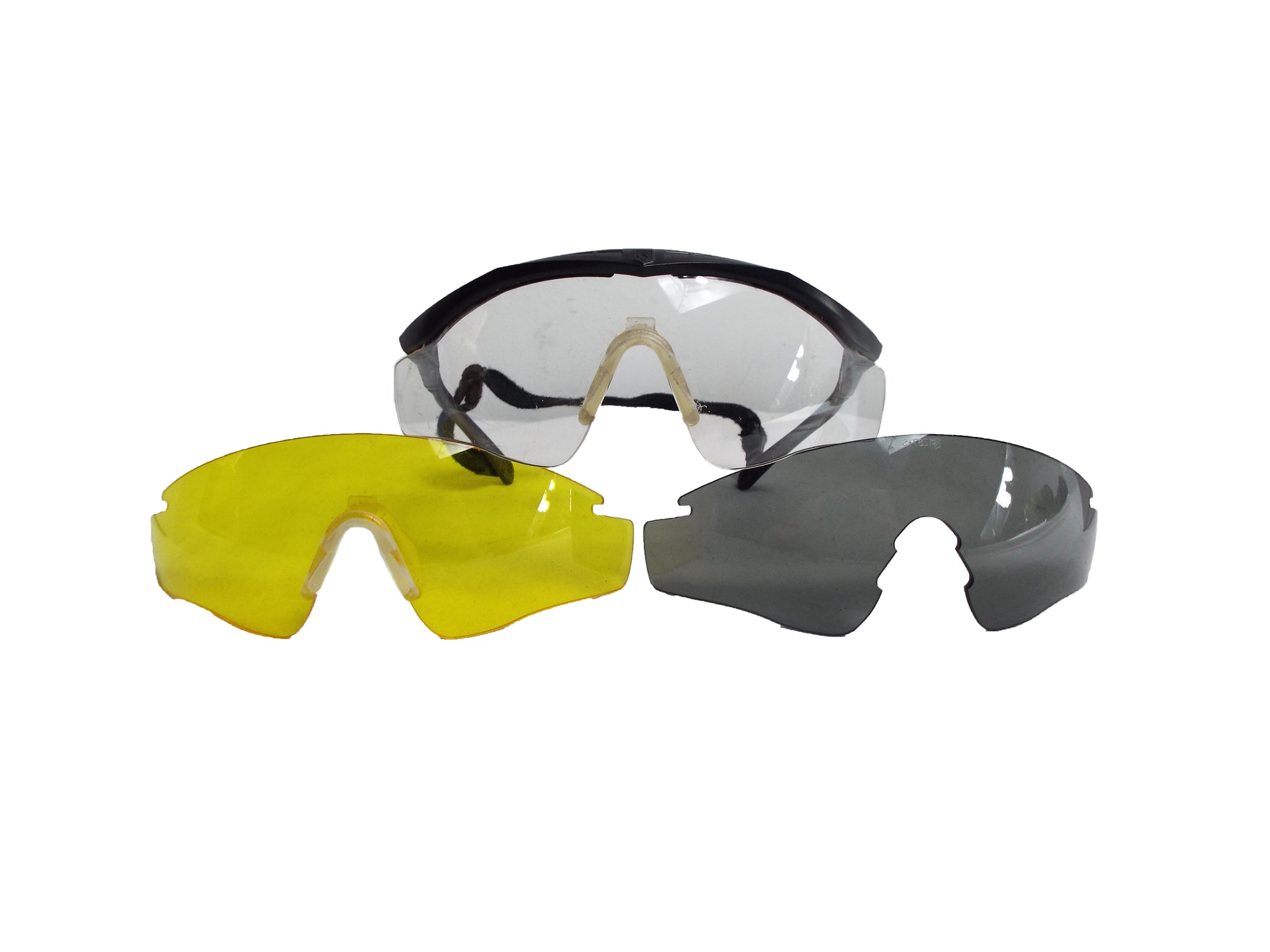 Tactical combat glasses made for the US British and Dutch army by Revision Military of the US in great condition. These military glasses have three removable lenses (clear, grey and yellow tint). A lighter version than the full goggle style and black case with revision logo